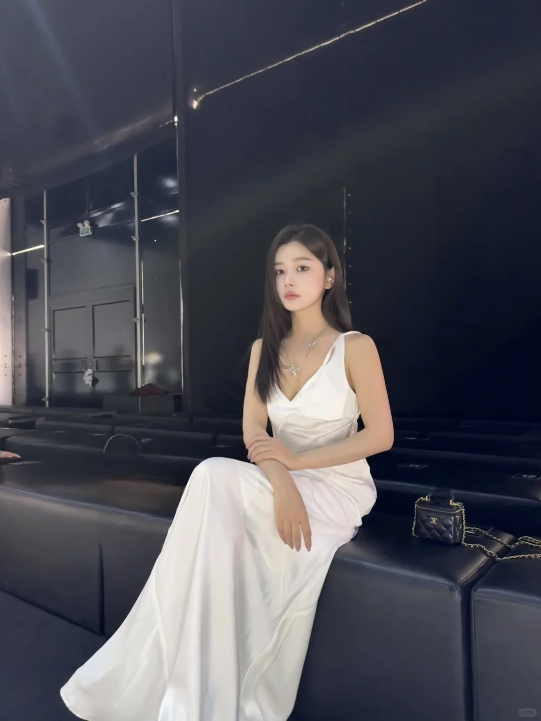 微微泛出的珍珠白莹润光泽和这身穿搭呼应的刚好