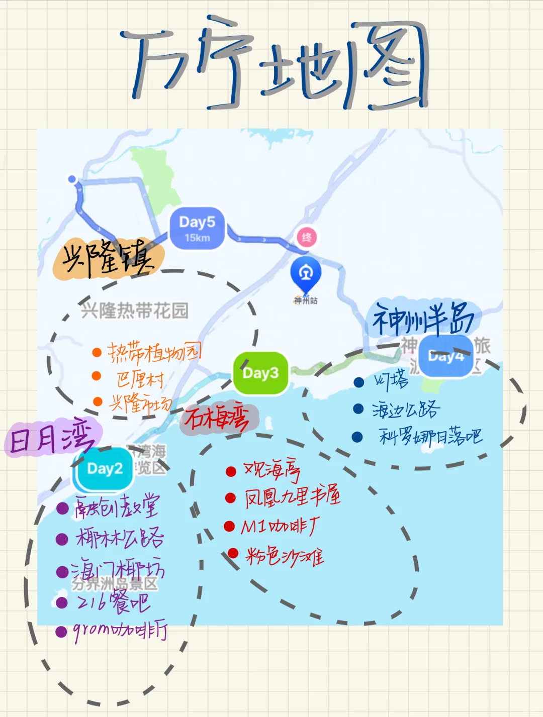 1️⃣万宁两个高铁站万宁站和神州站 外省的友友们建议飞海口 到了坐高铁直接到神州站 离万宁这些景点都更近一些