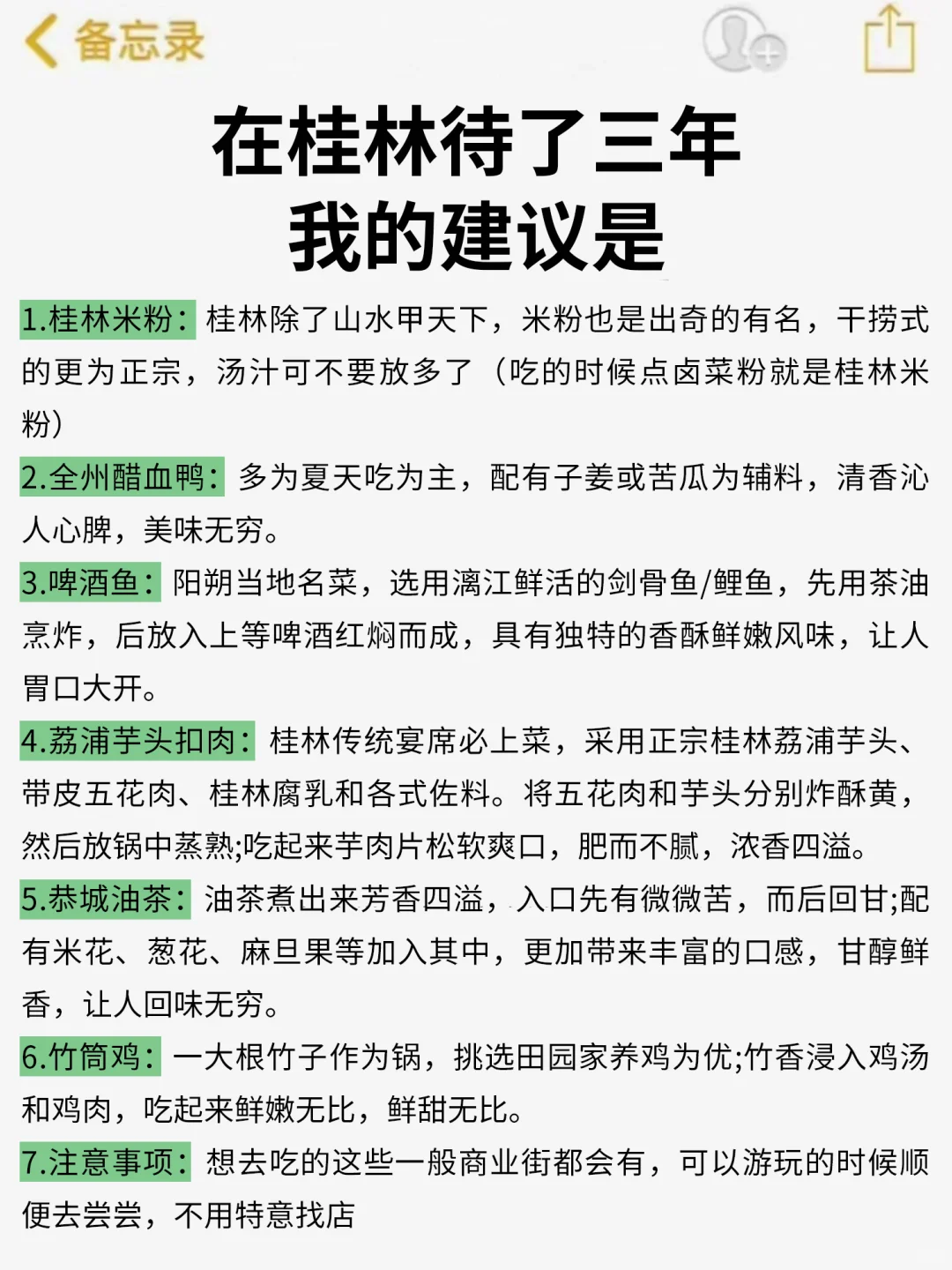 🌟✔️首先桂林跟阳朔距离大概60公里,高铁20分钟,打车一个半小时,建议在桂林玩一天,在阳朔玩两天,三天两晚桂林阳朔游差不多够啦。 📍Day1 抵达桂林市区 ✈️高铁或飞机抵达桂林,高铁到桂林站更方便。桂林景点距离很近,步行一天可以游玩。 【1】象鼻山:桂林城徽,要预约,从3号门进 【2】正阳路步行街:吃吃喝喝 【3】东西巷:明清时期的老巷子 【4】逍遥楼:登楼可俯瞰漓江 【5】两江四湖:沿湖看夜景 【6】日月双塔:不用上塔,夜景很美 🏠建议住东西巷或两江四湖附近 📍Day2