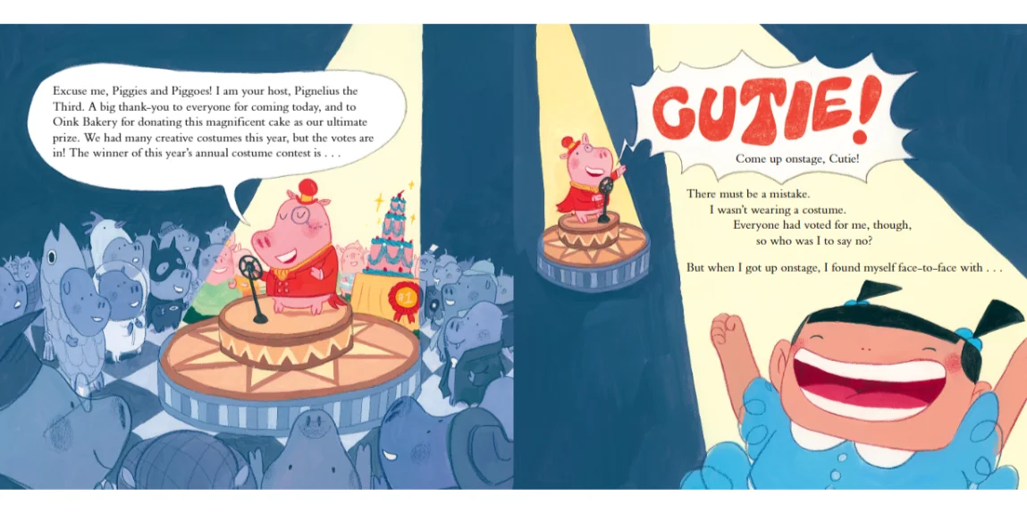 猪猪们的扮装派对正如火如荼地进行时,猪猪们一直在称赞小女孩的服装,即使她只是穿了一件普通的蓝色连衣裙。