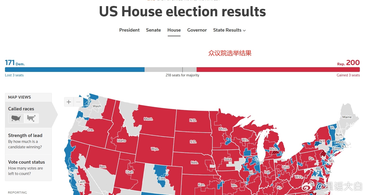 现在众议院结果还没有最终确定,但目前众议院也是共和党占优。