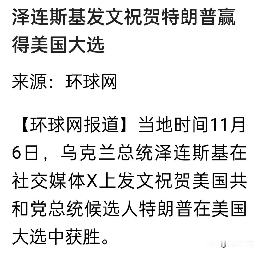 川普大选夜誓言:俄乌战场必须立即停火。川普言出必行,出去的话肯定会兑现承诺。 泽尼斯基好无奈,没办法,川普上台了,川普都发话了,只有舔着个脸皮道一下贺,难道演员还能变戏法吗?还能说什么呢! 不情愿地发文祝贺川普赢得美国大选。 目前乌克兰比殖民地状态好不了多少,就看接下来怎么停火谈判了。