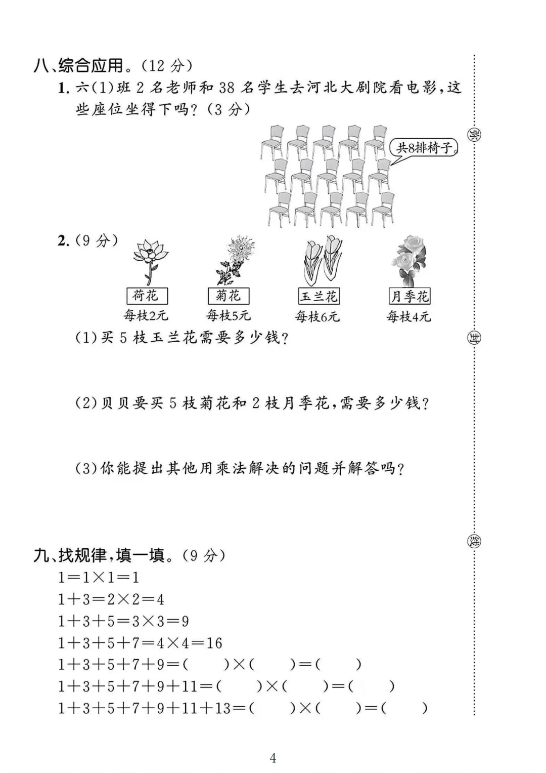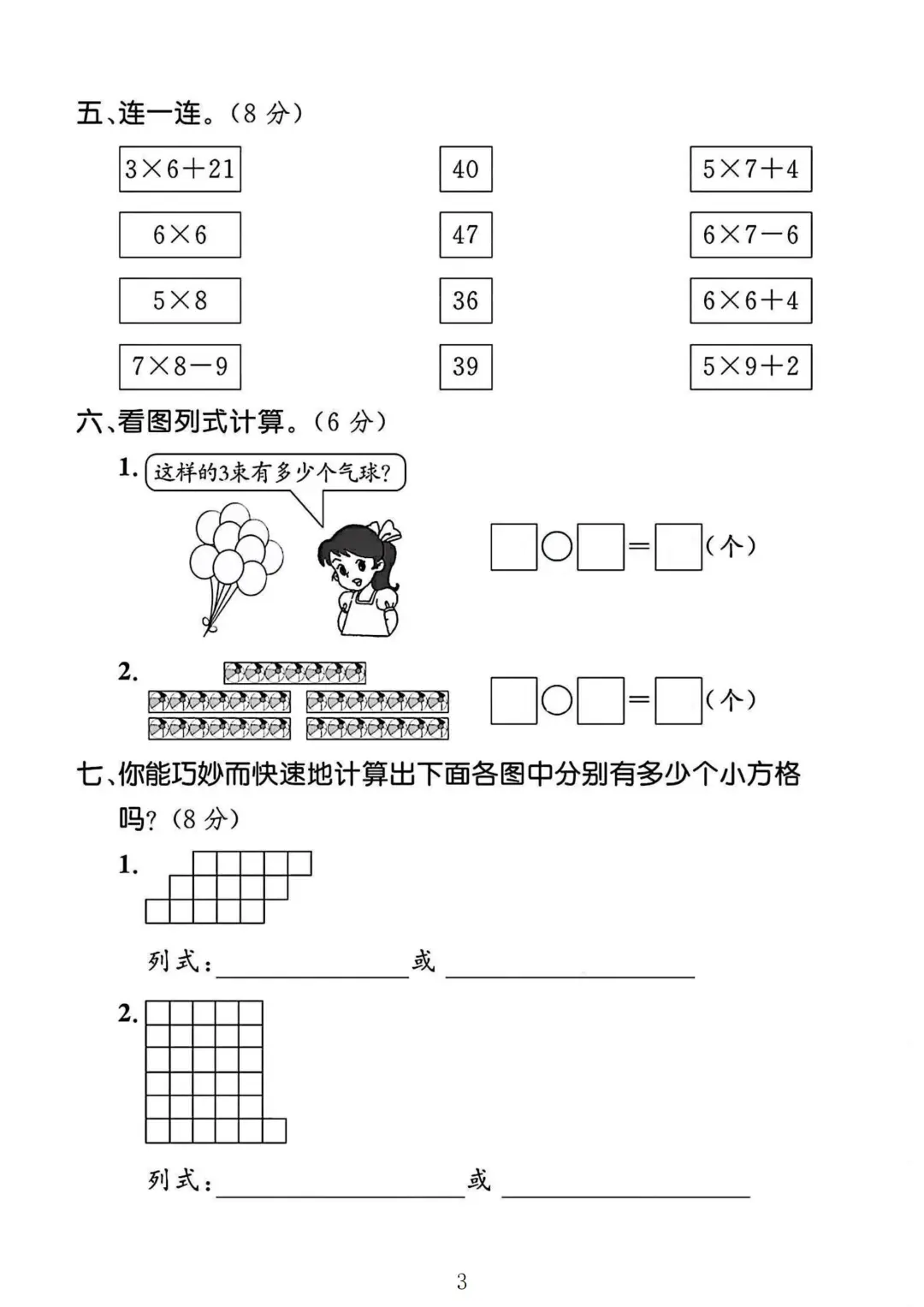 人教版 二年级上册数学 单元测试 第六单元测试卷 试卷 电子版可打印