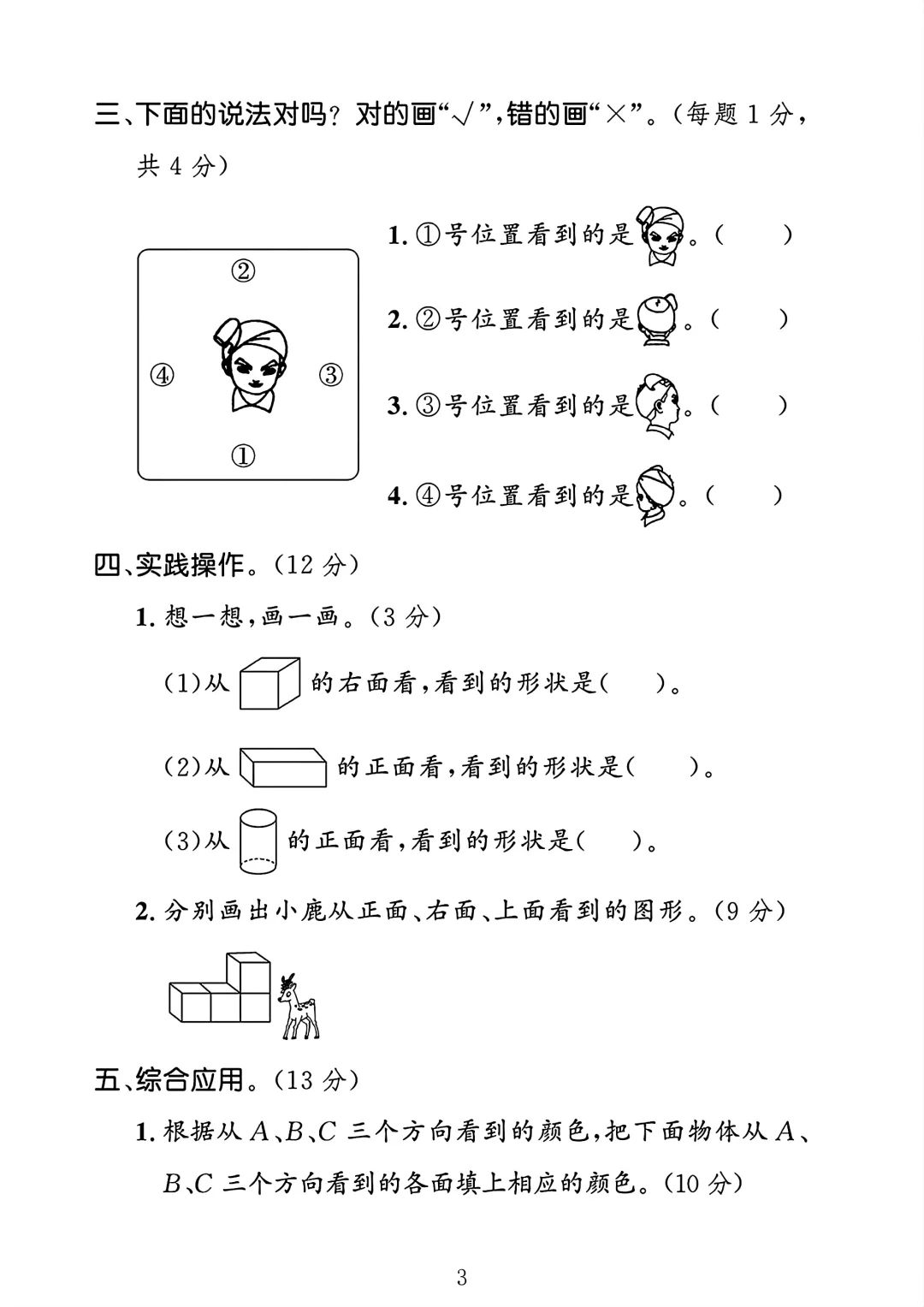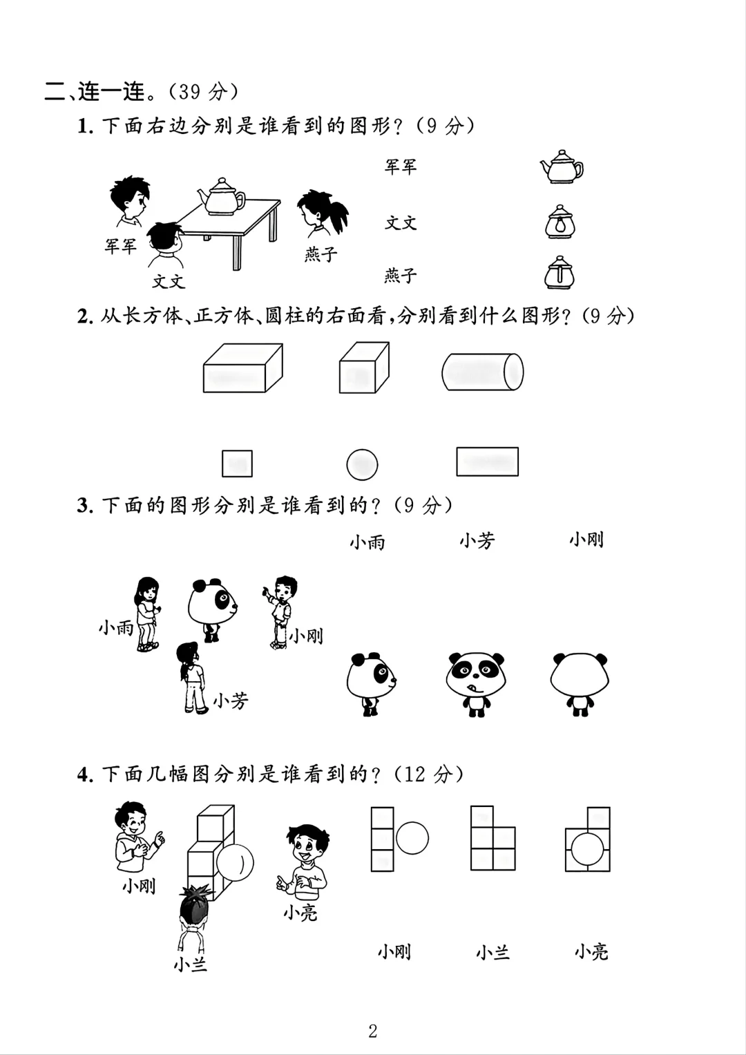 人教版 二年级上册数学 第五单元测试卷 单元测试 电子版可打印