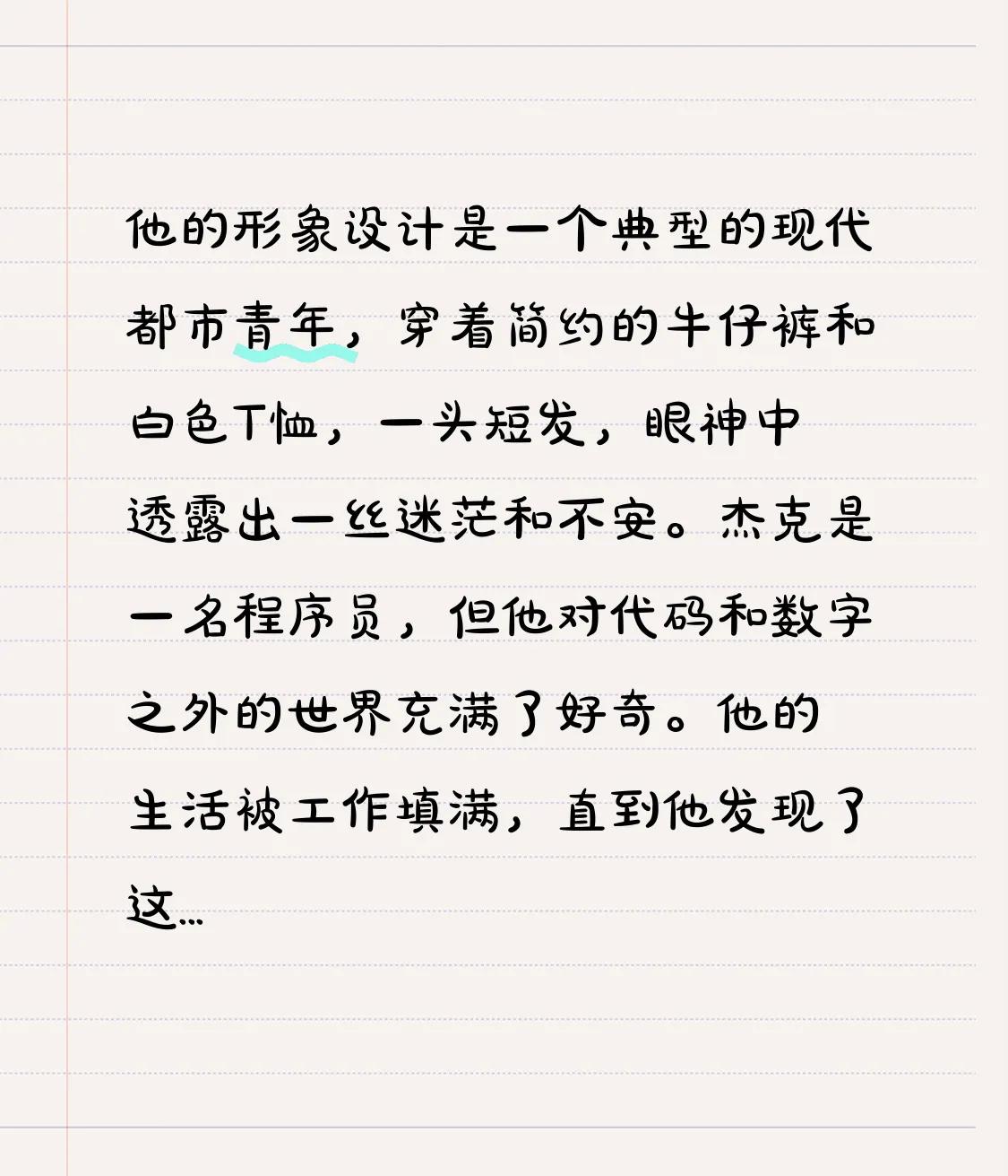 在一个被现代科技遗忘的小镇,有一条古老的街道,街道尽头是一家名为“时光旅者”的古董店。这家店的主人是一位名叫艾莉森的中年女性,她有着一头波浪般的银发和深邃的蓝眼睛,眼角的细纹透露出岁月的痕迹,但那双眼睛里闪烁着对未知世界的无尽好奇。艾莉森的形象设计灵感来源于一位热爱历史的探险家。她的穿着总是复古而优雅,偏爱维多利亚时代的服饰,常常是一件深色的长裙搭配着精致的蕾丝披肩。她的店里摆满了各种古董钟表和古老的地图,每一件物品都似乎藏着一个故事,等待着有缘人来揭开它们的秘密。一天,一个名叫杰克的年轻男子走进了这家店。他的形象设计是一个典型的现代都市青年,穿着简约的牛仔裤和白色T恤,一头短发,眼神中透露出一丝迷茫和不安。杰克是一名程序员,但他对代码和数字之外的世界充满了好奇。他的生活被工作填满,直到他发现了这家古董店,仿佛找到了一个逃离现实的出口。艾莉森注意到了杰克的不安,她微笑着迎了上去,用她那温和而富有磁性的声音问道:“年轻人,你看起来像是在寻找些什么。”杰克环顾四周,目光最终落在了一块古老的怀表上,怀表的表面刻着复杂的图案,似乎在诉说着它的历史。他伸手轻轻触摸,突然间,怀表发出了微弱的光芒,他感到一股奇异的力量将他包围。“这...这是什么?”杰克惊讶地问。艾莉森眼中闪过一丝狡黠的光芒,她轻声说:“这是一段旅程的开始,一个穿梭时光的冒险。”随着艾莉森的话音落下,怀表的光芒越来越亮,杰克感到自己被吸入了一个旋转的光旋涡中。当他再次睁开眼时,他发现自己站在了一个完全不同的时代,而艾莉森正站在他身边,微笑着说:“欢迎来到时光之旅的第一站。”