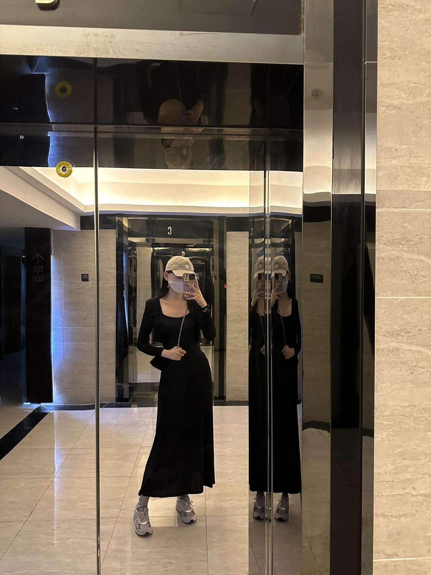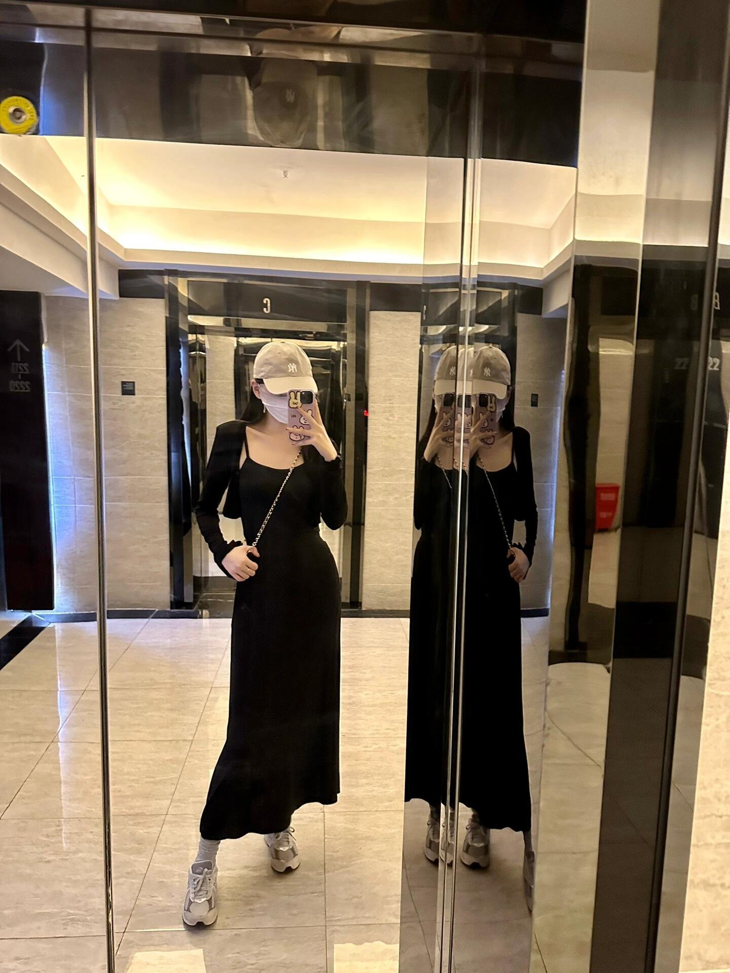 2024秋冬季新款黑色长袖内搭包臀连衣裙