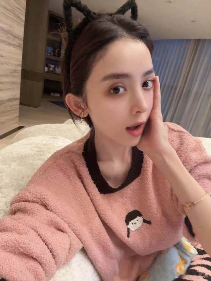 #娜扎素颜侧颜随拍#娜扎素颜侧颜随拍惊艳,未施粉黛却明艳。粉色卡通睡衣加持,可爱