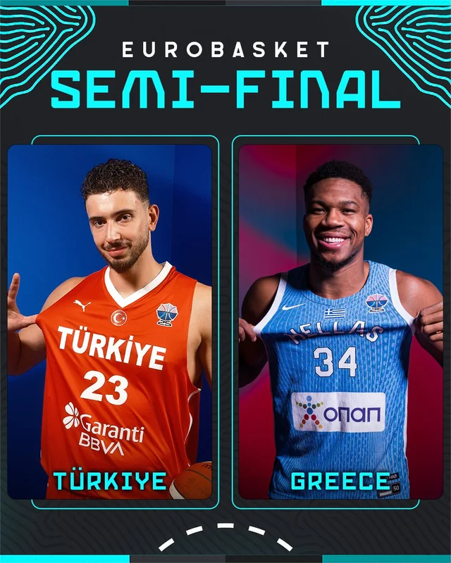 半决赛对阵如下:土耳其队vs希腊队;芬兰队vs德国队。四支球队均有NBA球星压阵,申京将与字母哥一争高下,马尔卡宁则将和施罗德、瓦格纳迎来对决。