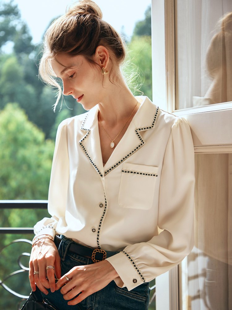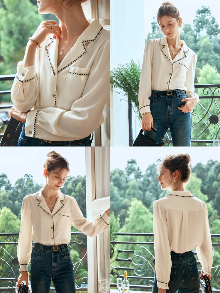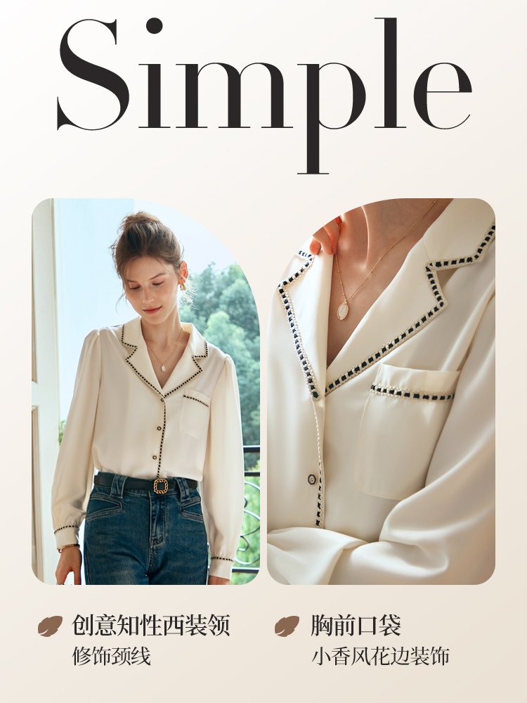 雅致腔调感!知性西装领小香风衬衫