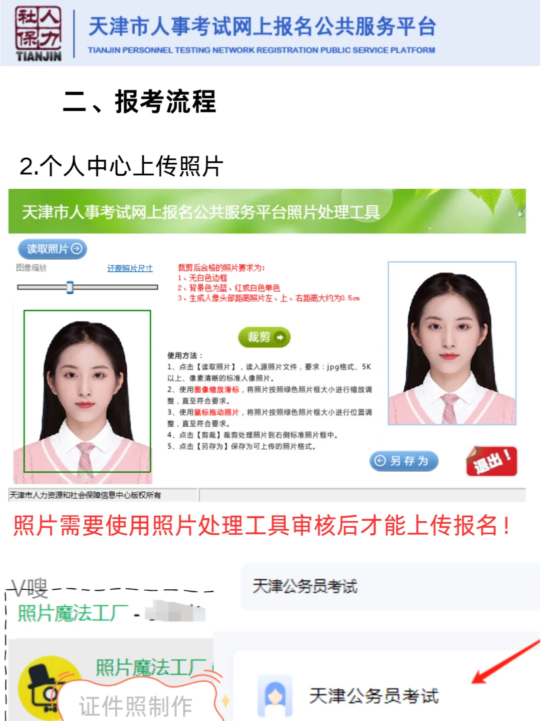 天津公务员考试11月8日早8:30报名 考公人准备好报名照片 照片审核严格,需要照片处理工具审核通过后才能上传!
