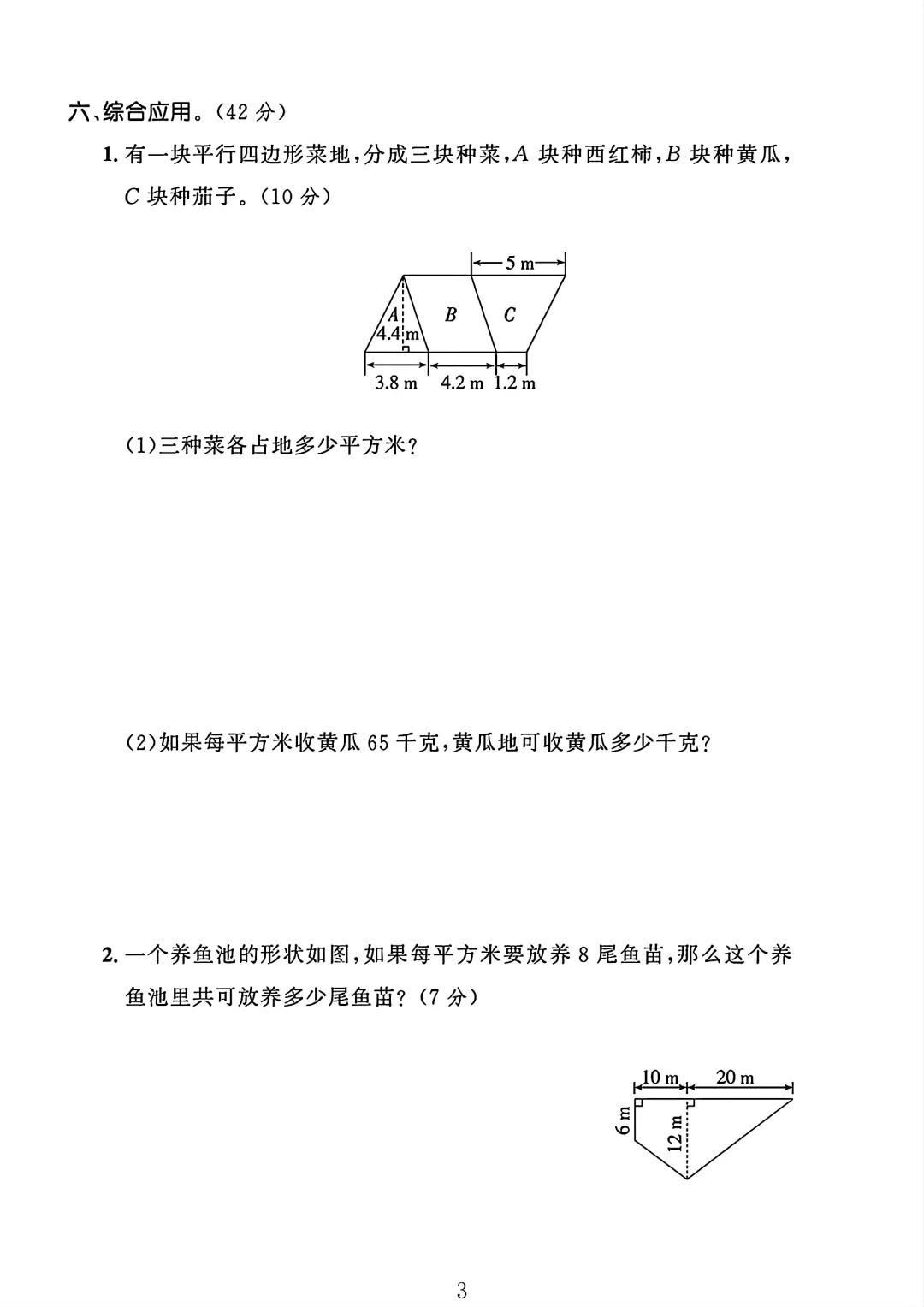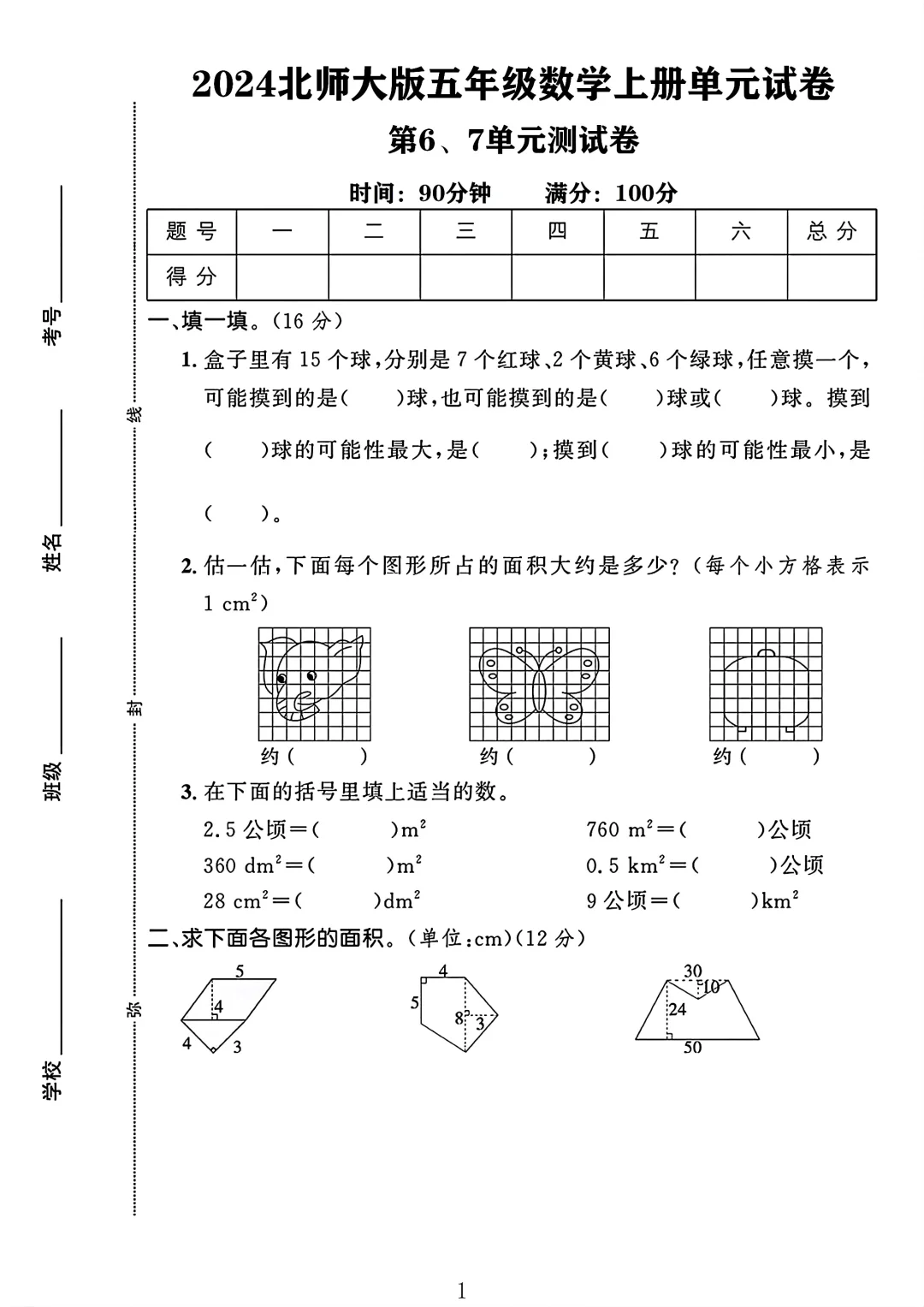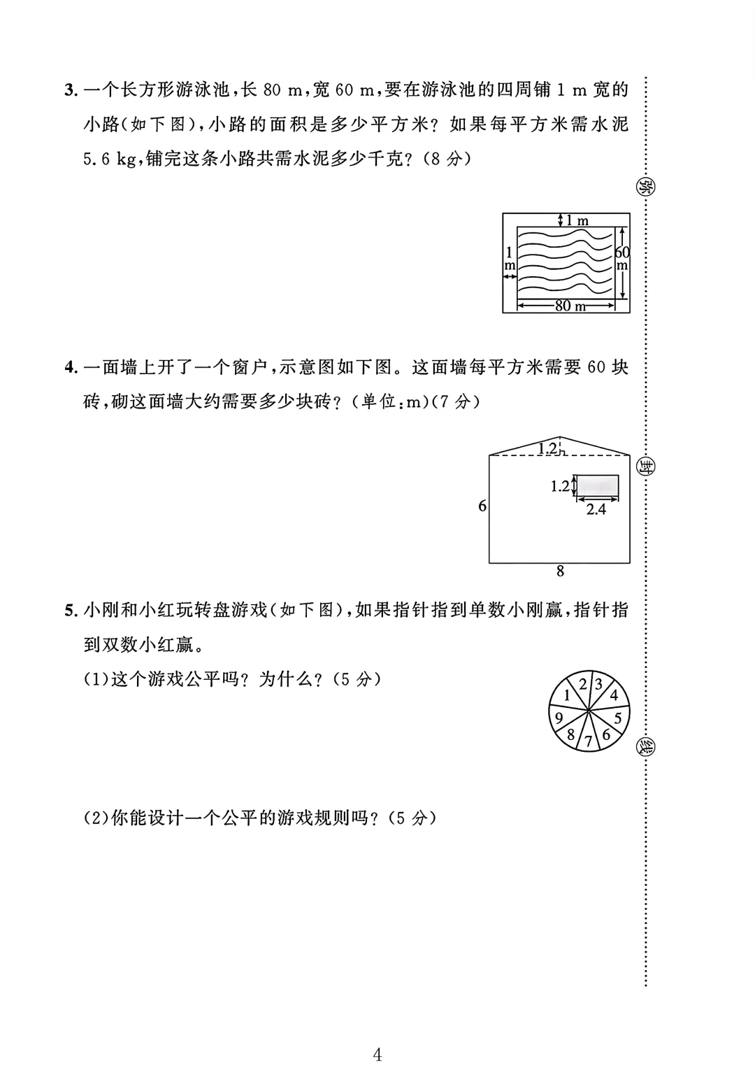 北师大版数学 五年级上册数学 单元测试 第六单元 试卷 电子版可打印