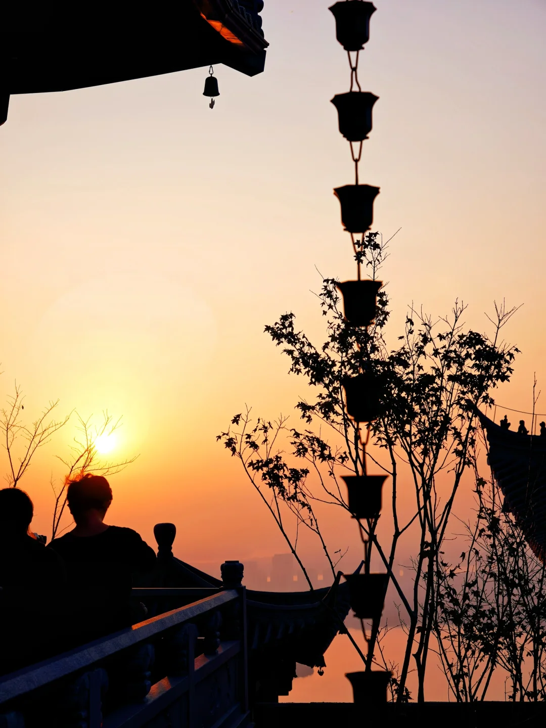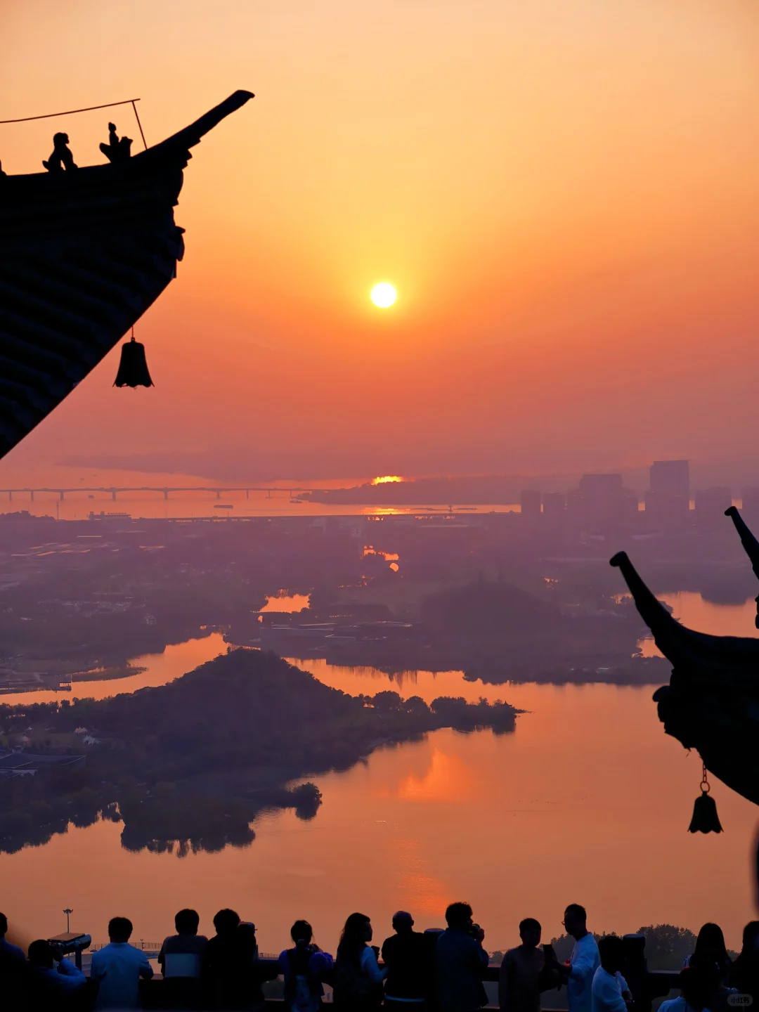这里是湘湖边的先照禅寺,山顶有两块观景台,你好湘湖观景台和寺庙门口的观景台,视野很开阔。近处可以看到湘湖,远处可以看到钱塘江、富春江、浦阳江三江交汇。落日时分,夕阳洒在水面上,波光粼粼,美景尽收眼底!