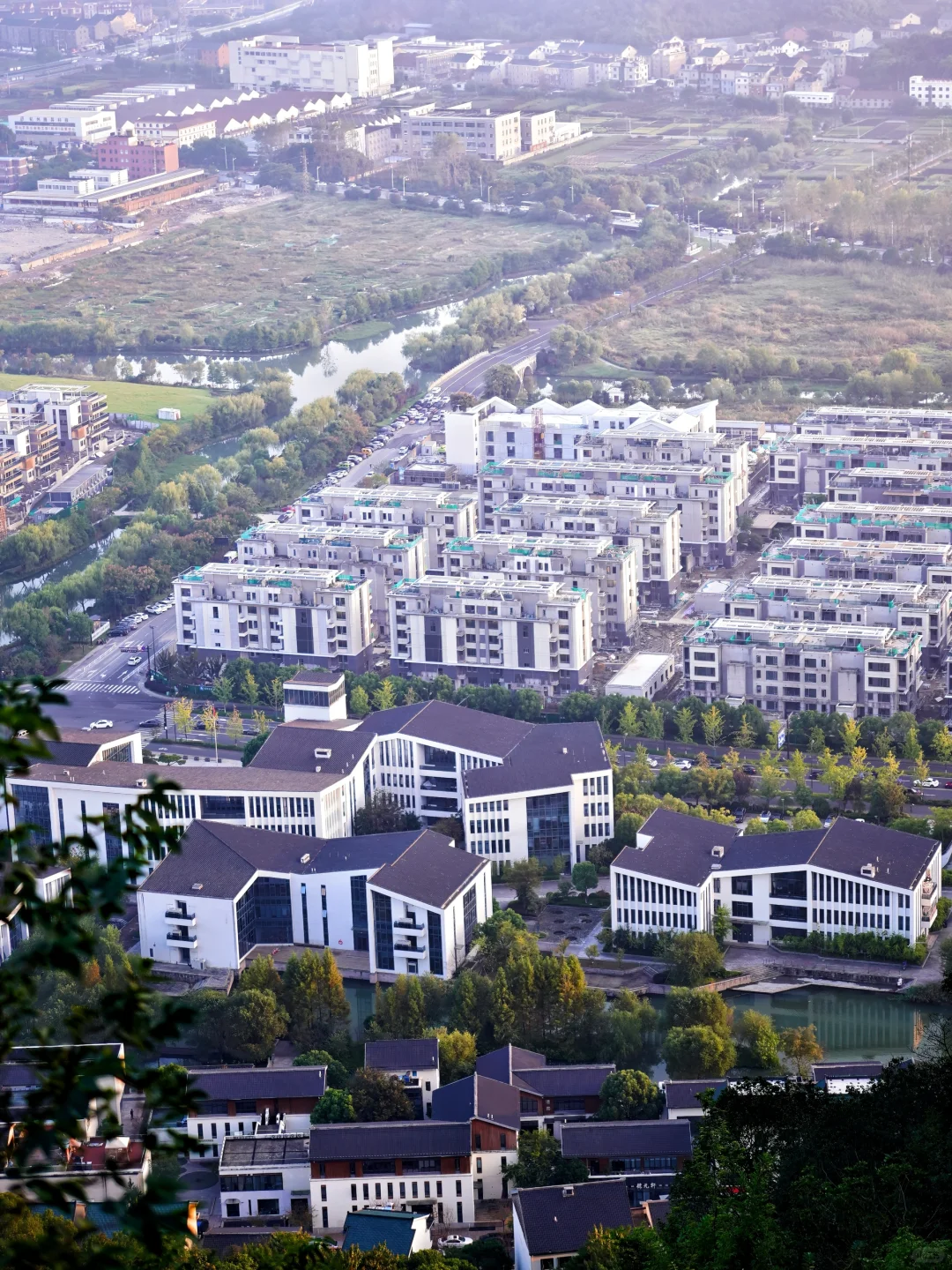 车子停在湘湖金融小镇慢生活街区,从西面入口上山,都是台阶路,30分钟左右登顶,沿途有休息站可以休息。