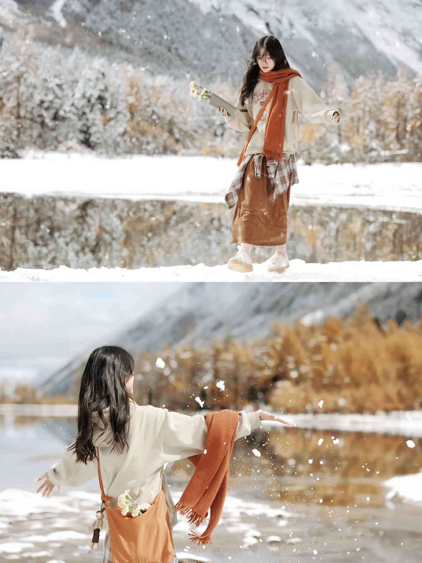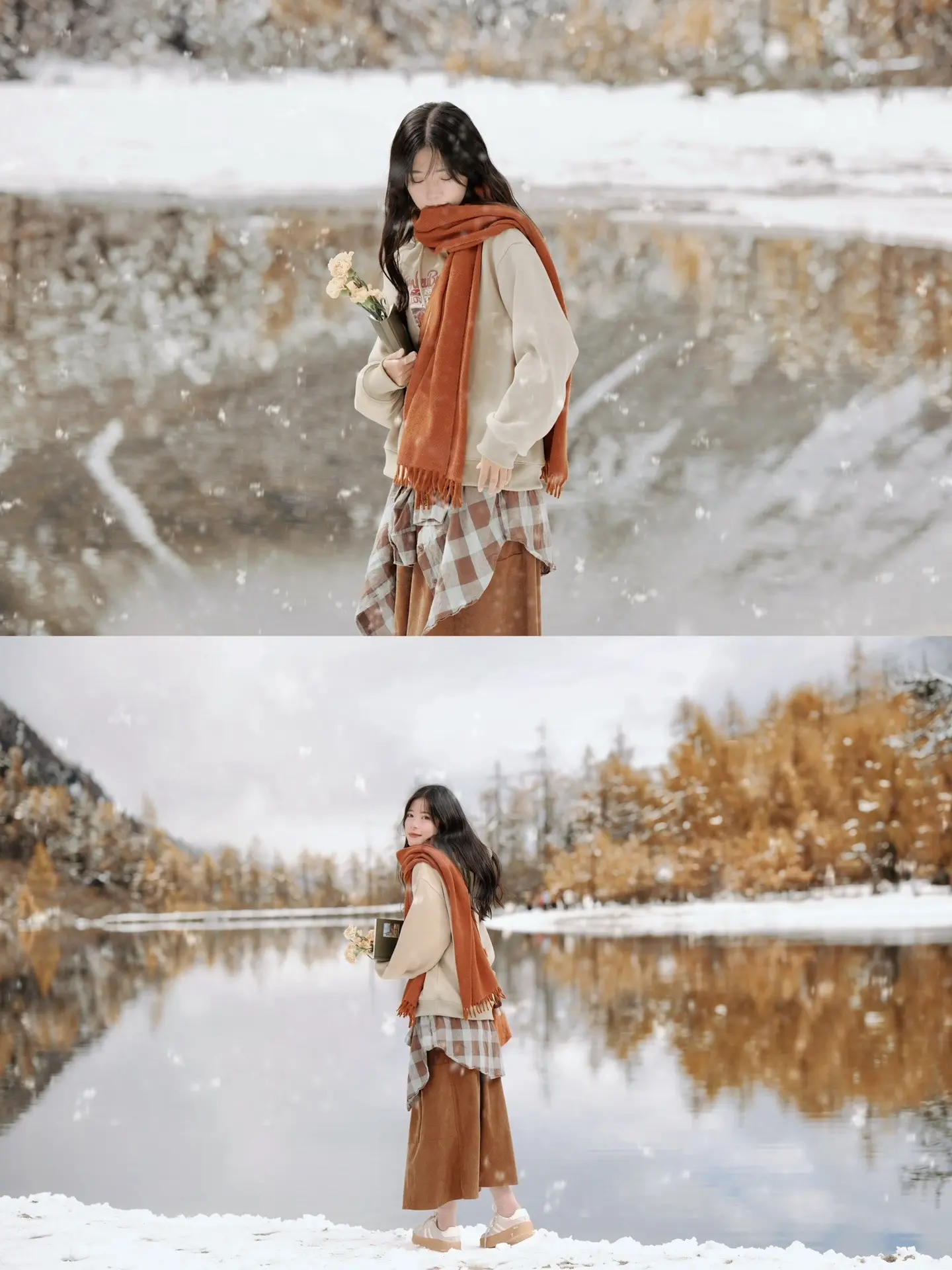 拍出文艺电影感|到了看雪的时候啦❄️。秋彩林+冬日雪 随手拍出文艺电影...