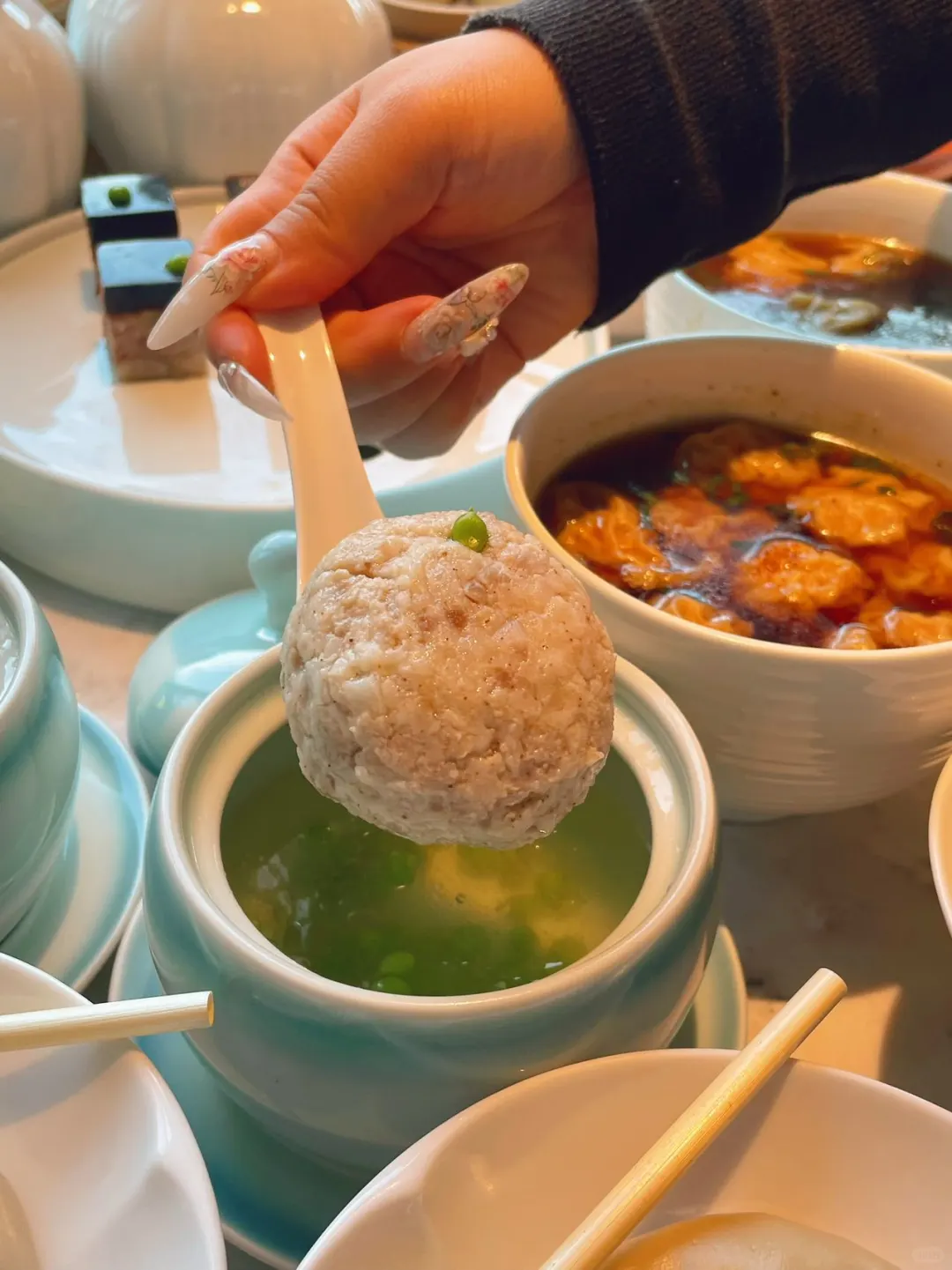 ✨夫子庙香园南京首店是吃货天堂。这里有全天候供应的扬州早茶,茶点手工现场制作。淮扬菜更是一绝。 淮扬软兜是经典,鳝鱼软嫩,入口即化,浓油赤酱使其鲜香浓郁。 招牌狮子头必点,个头适中且圆润,咬一口,肉质鲜嫩多汁、肥瘦相宜,荸荠等配料增添清爽,不油腻。 秧草包子别错过,外皮软,内馅秧草鲜嫩清香,有春天田野的味道。 更有招牌奶皮子也很棒,奶香浓郁、入口绵密醇厚、滑溜不腻。 姐妹们快来解锁更多美食吧!