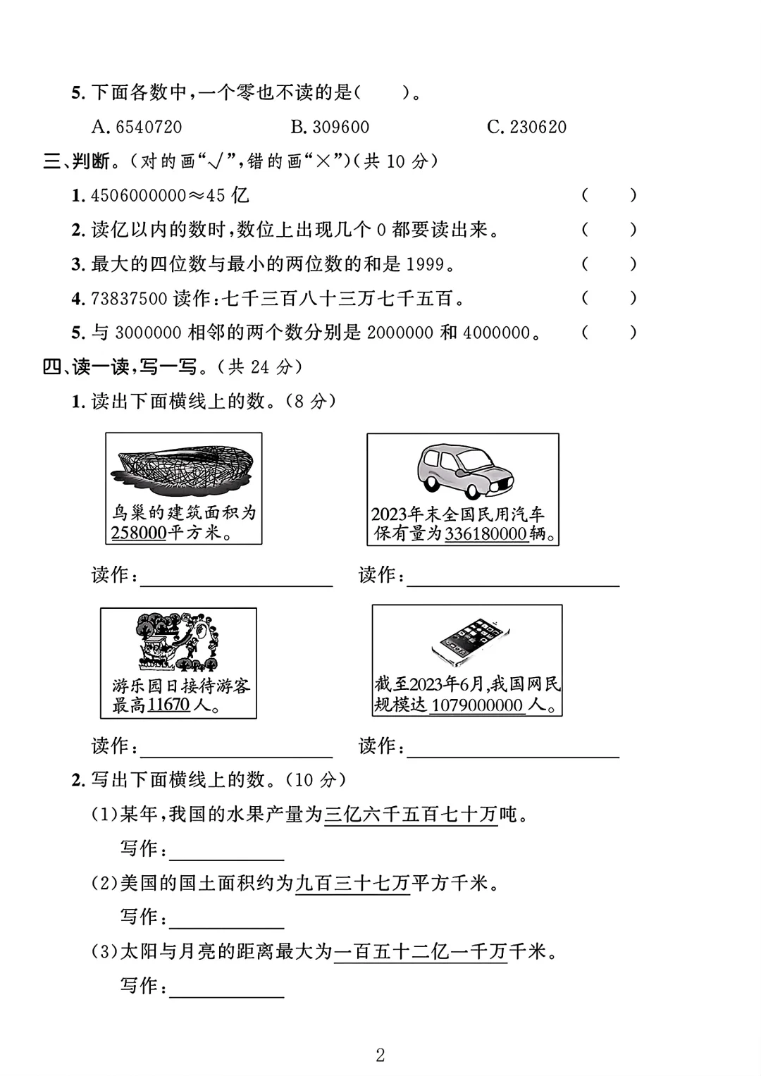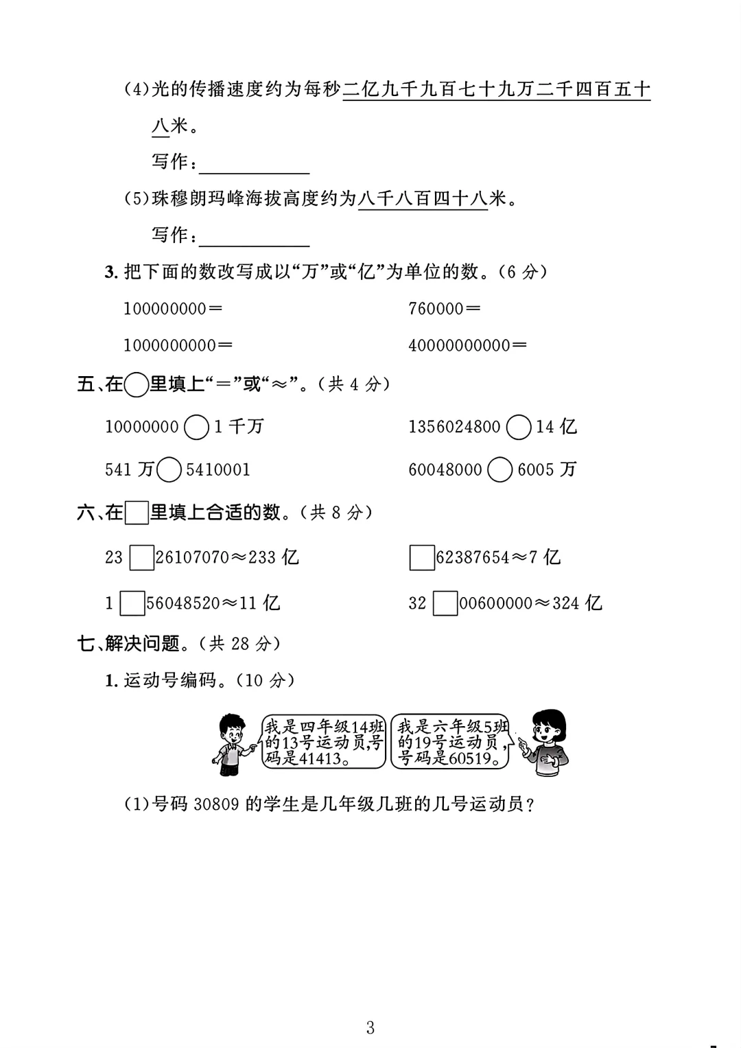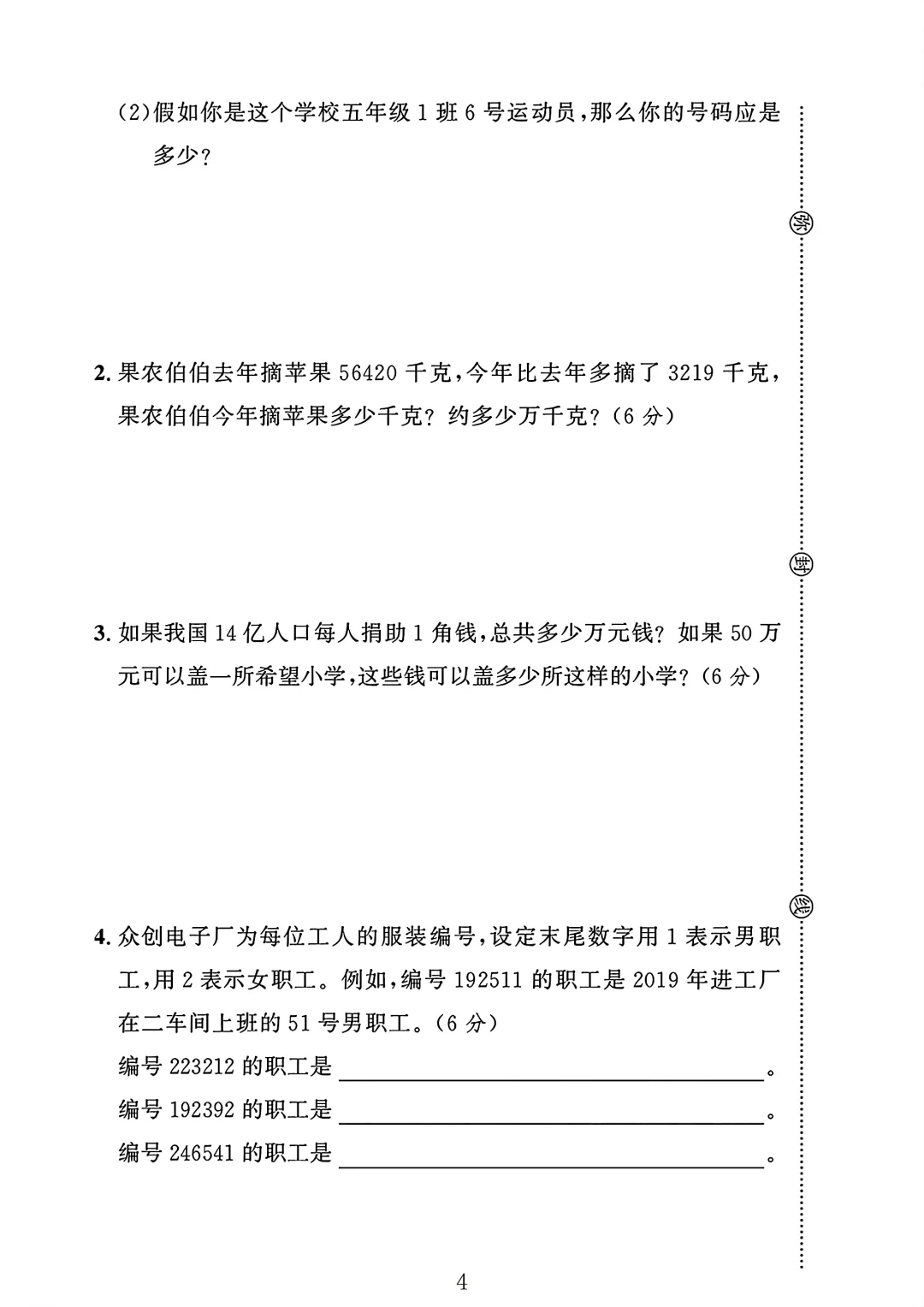 冀教版 四年级上册数学 单元测试 第六单元 试卷 电子版可打印