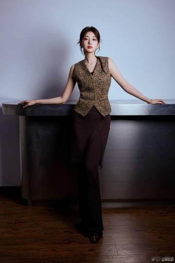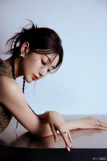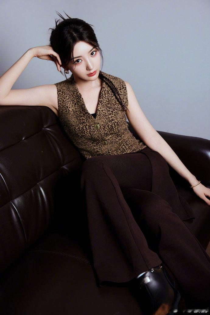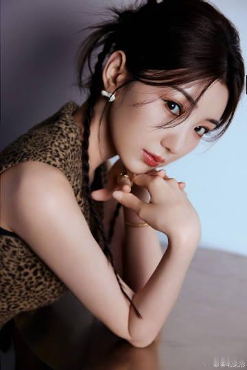 #毛晓彤豹纹无袖上衣#毛晓彤豹纹无袖上衣搭配单侧麻花辫盘发,时尚感爆棚,俏皮可爱