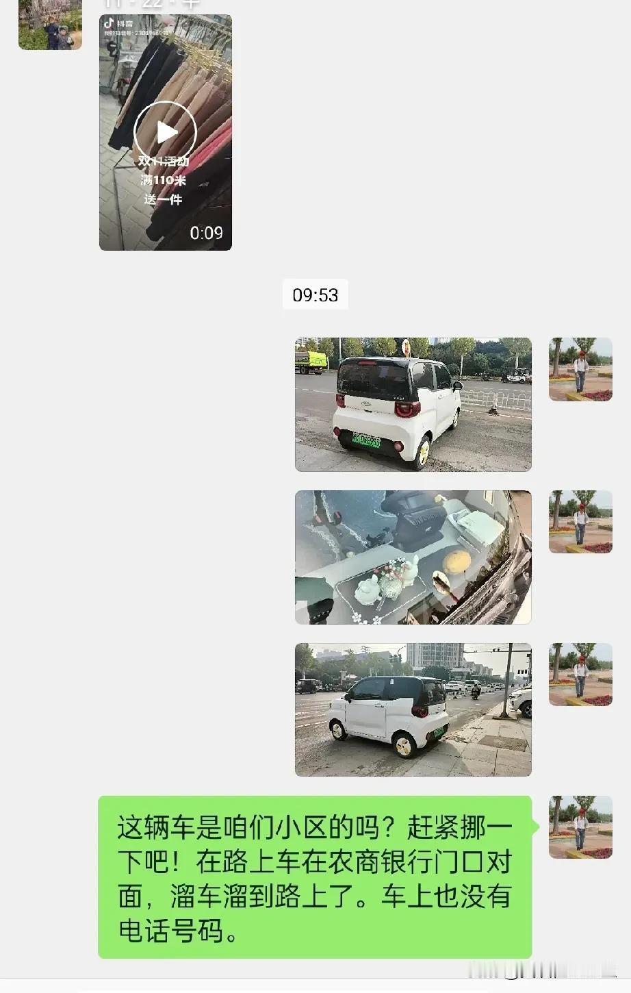 也不知是不是我们小区的人,把车停在银行对面,可能手刹没有拉紧,溜车溜到路上去了!不光阻塞交通,还存在安全隐患,时间长了,车被刮蹭也很正常。 本想打电话通知车主过来挪车,转了一圈也没找到电话号码,只好在我们小区的微信群里发了一下。但愿车主能看到并尽快挪车吧![心][心]