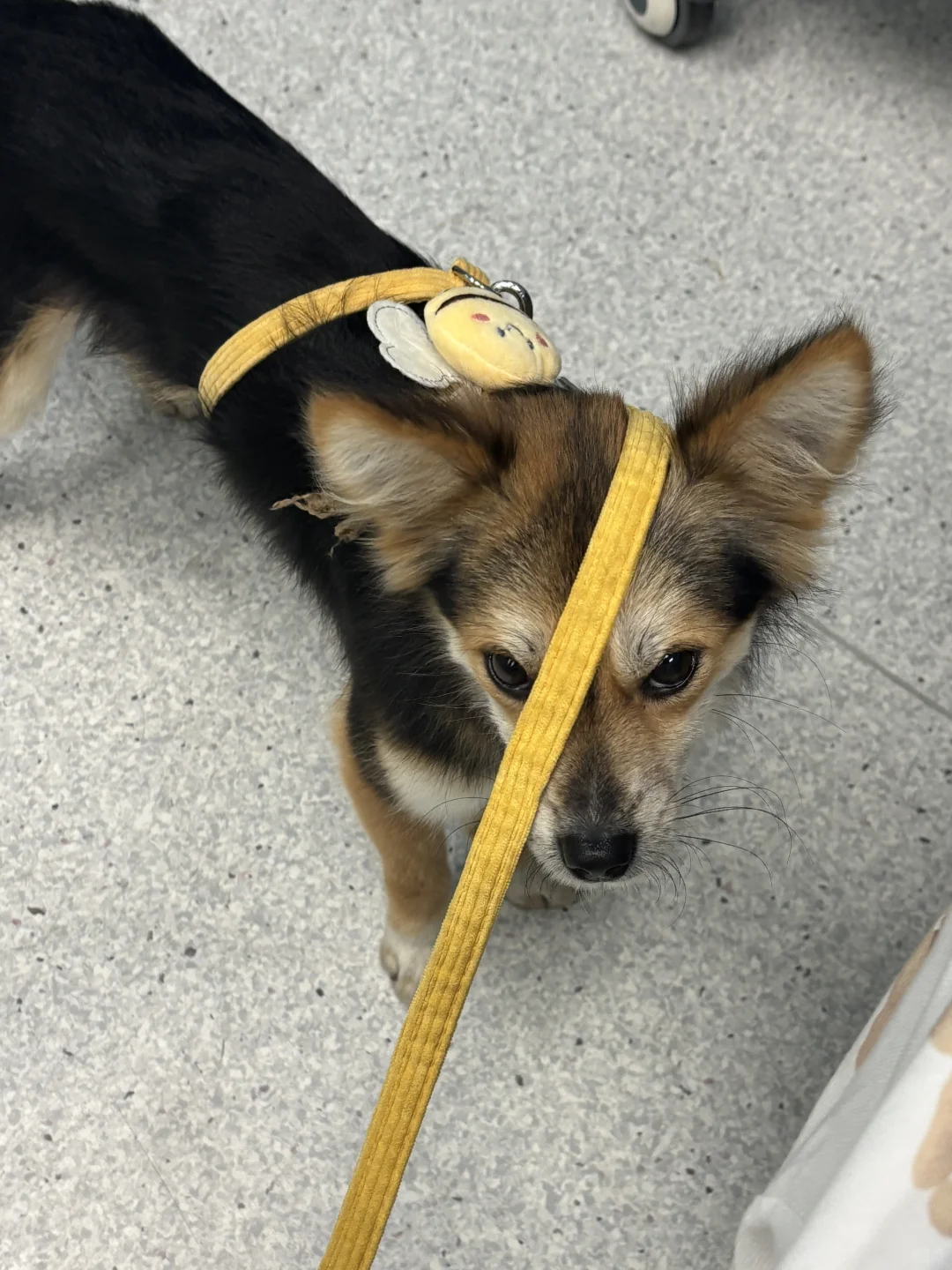 不过昨晚他终于学会用牵引绳了,至少能走路了,不再像以前那样走都不走还疯狂咬绳子。我买了两种牵引绳,我这次一定要让他学会不管他愿意不。。