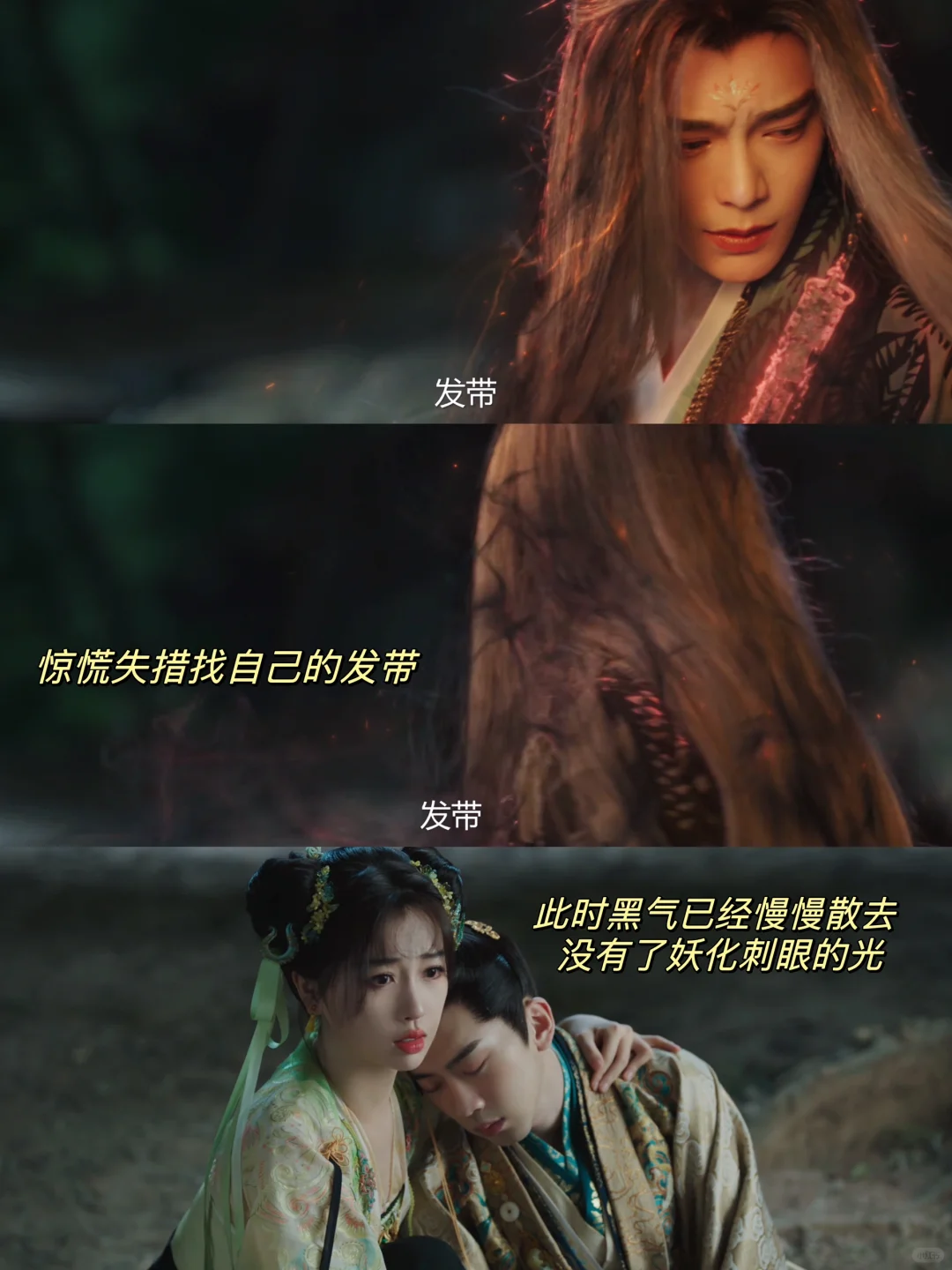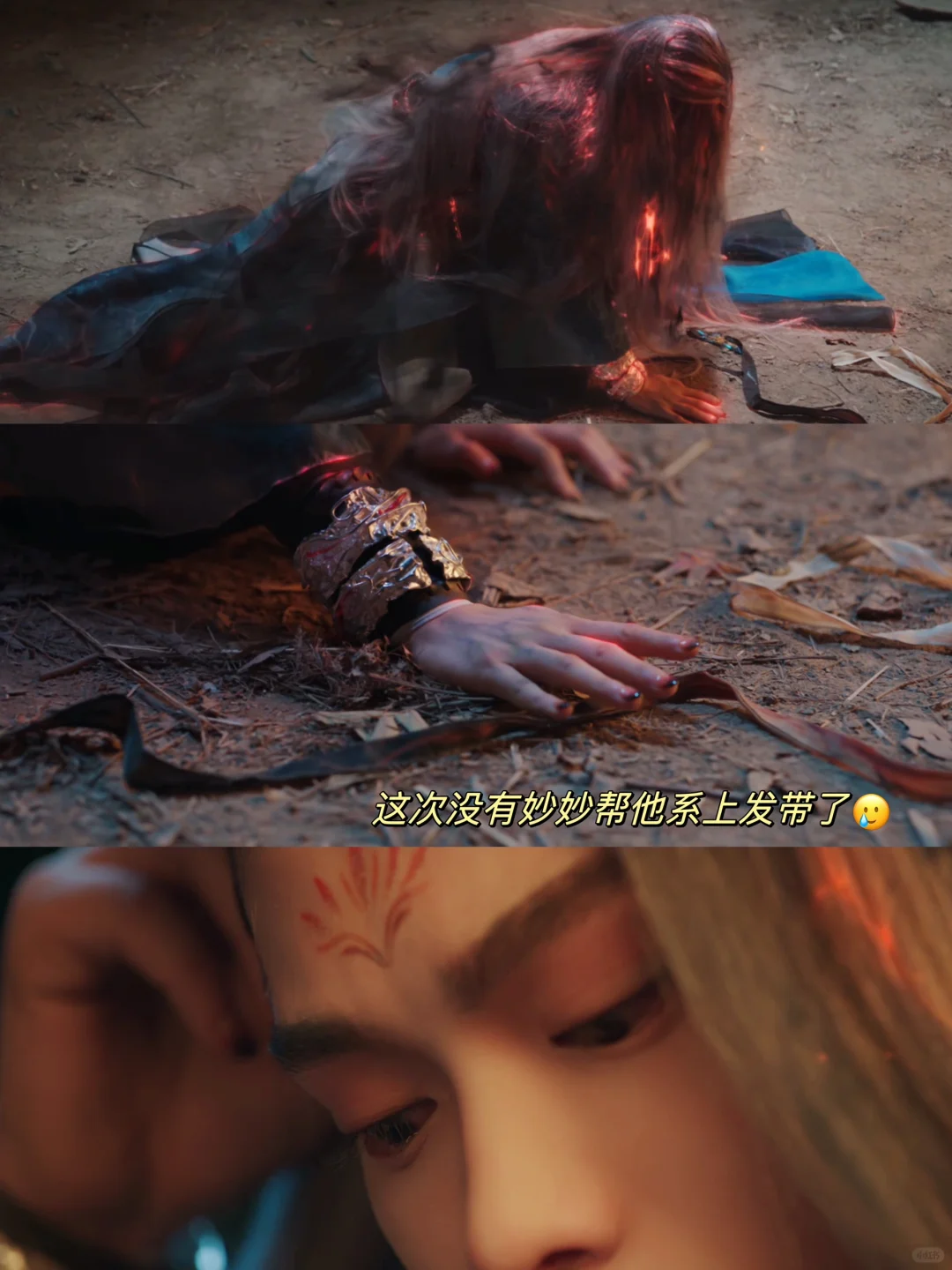 他不知道妙妙被手镯控制,以为妙妙不敢再接近自己因为怕自己,他失魂落魄的找发带,但这次没有妙妙帮他系上发带了😭😭😭
