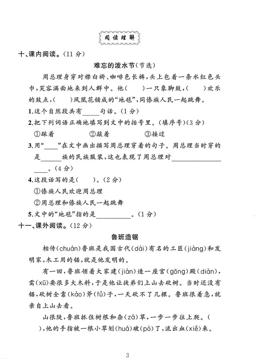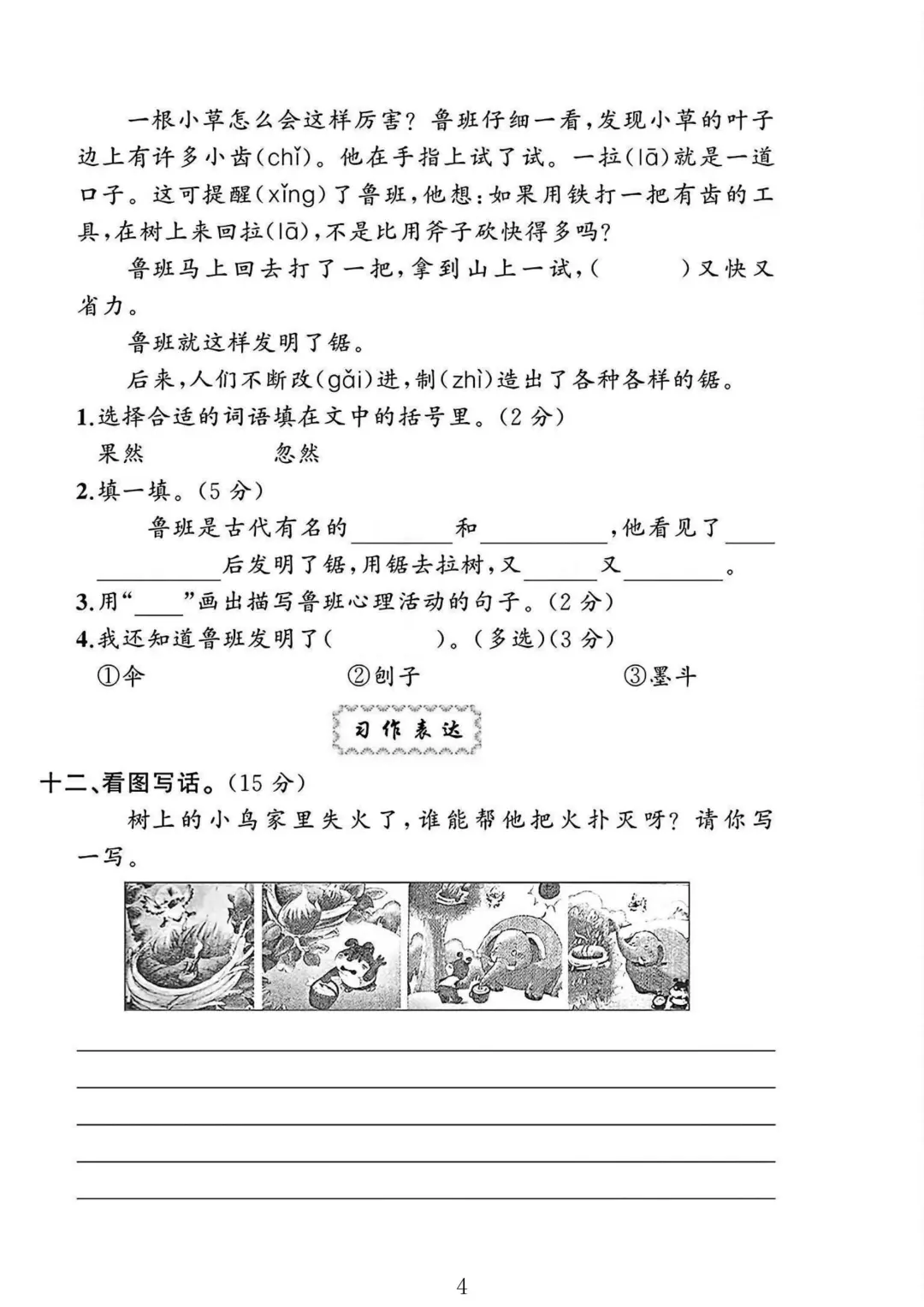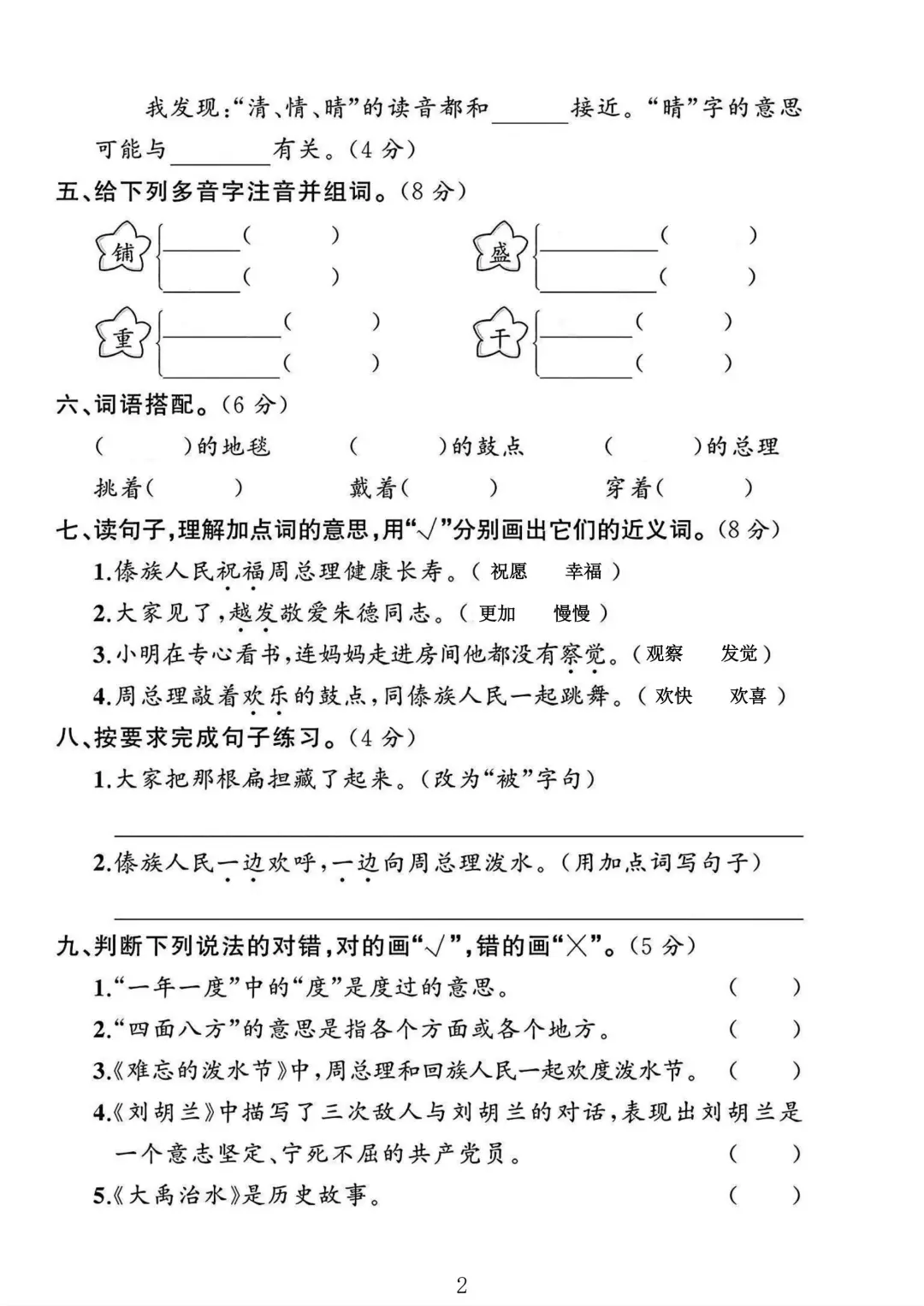 人教版 二年级上册语文 单元测试 第六单元测试卷 试卷 电子版可打印