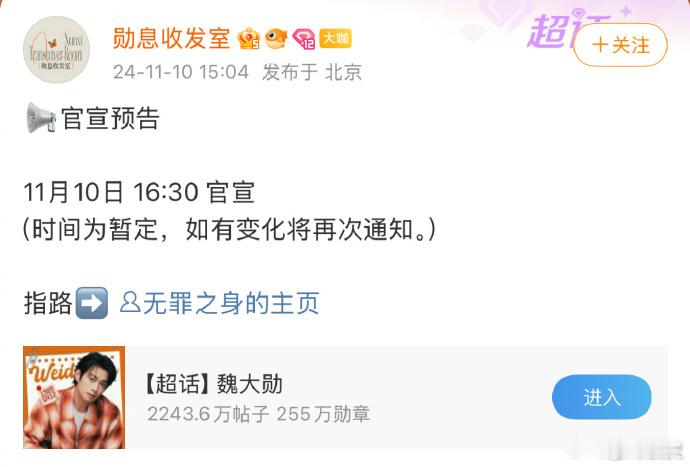 #魏大勋无罪之身官博四点半官宣#魏大勋的 “无罪之身” 项目一直备受关注,而官博