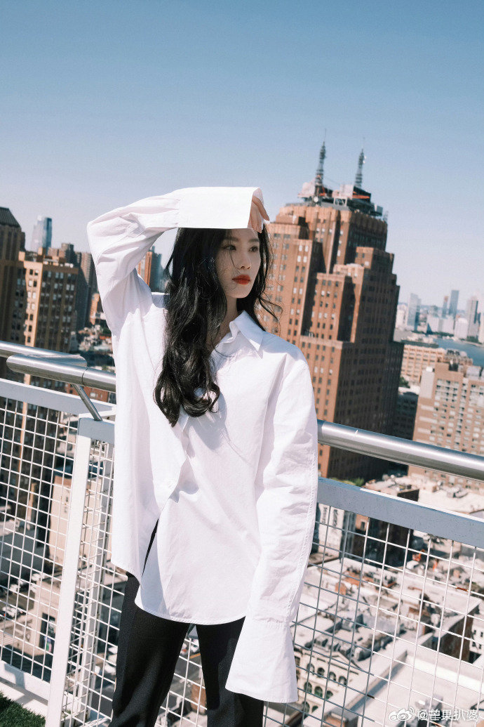 #刘诗诗冷感红唇妆# 刘诗诗冷感红唇妆,白衬衫好随性,秋冬look松弛感拉满#刘诗诗秋冬look#