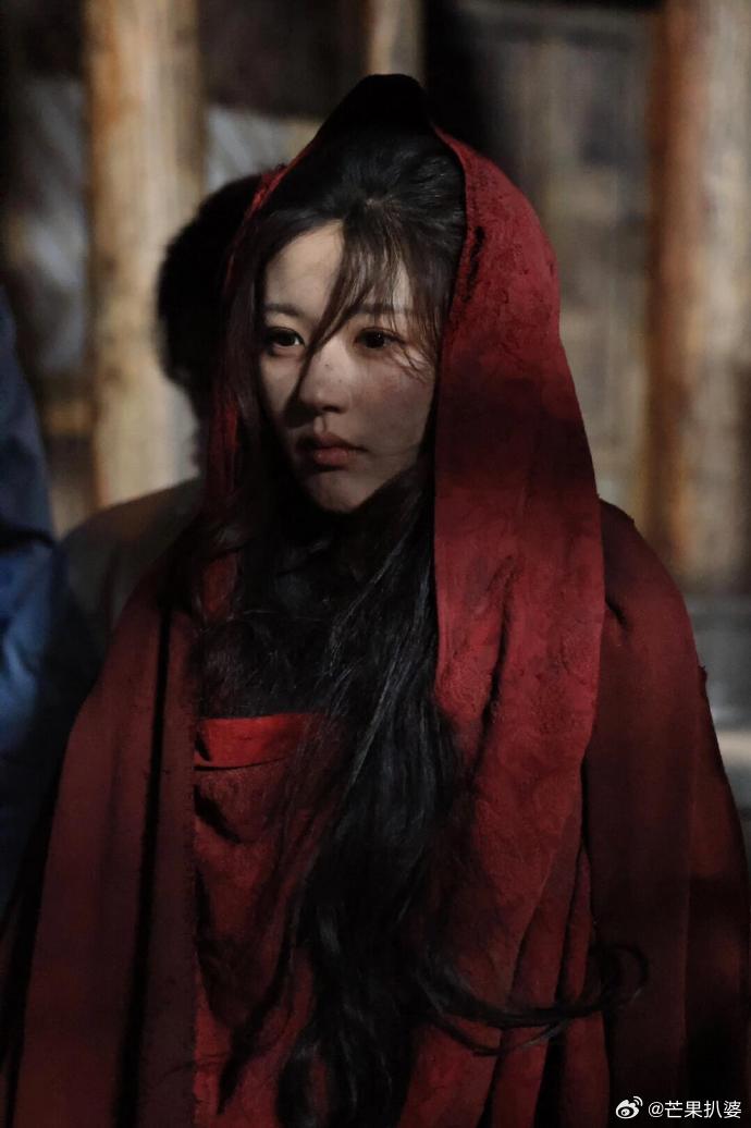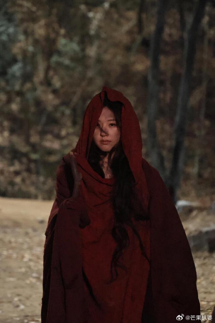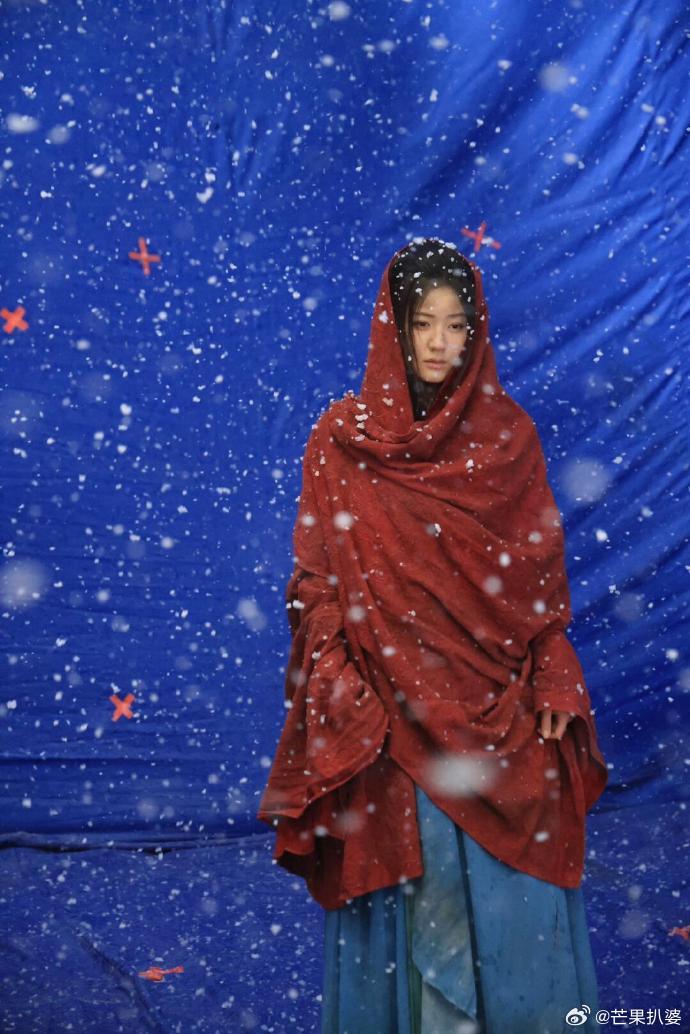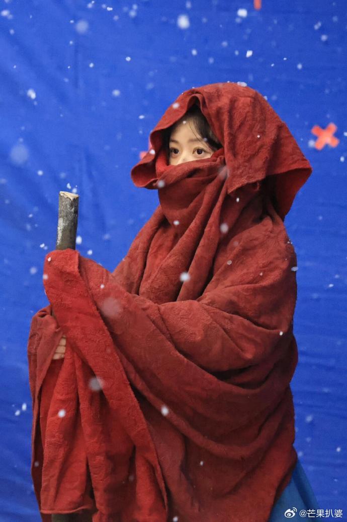 #赵露思青丝载雪涅槃新生#赵露思青丝载雪宛如凤凰涅槃新生,红袍披风的战损造型,尽