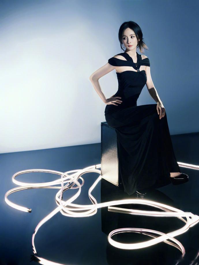 #杨幂盘发黑裙look#杨幂的盘发黑裙 look,宛如一幅绝美的古典画卷,散发着