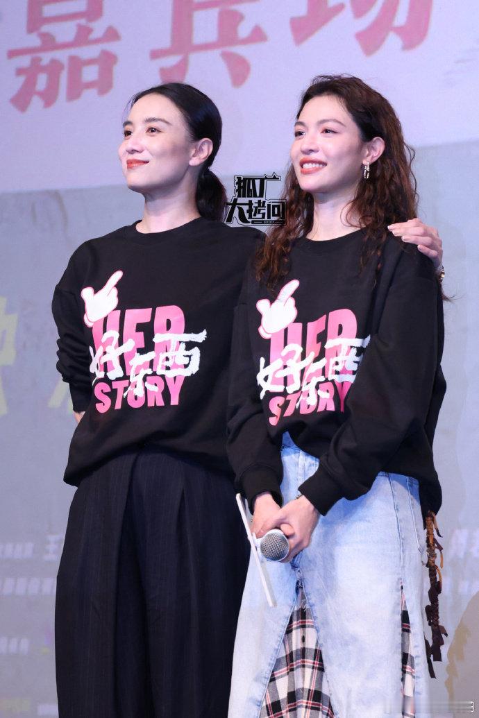 #宋佳钟楚曦好东西上海路演生图# #宋佳揽着钟楚曦的肩# 宋佳和钟楚曦在《好东西》上海路演的生图,状态都好好呀!!