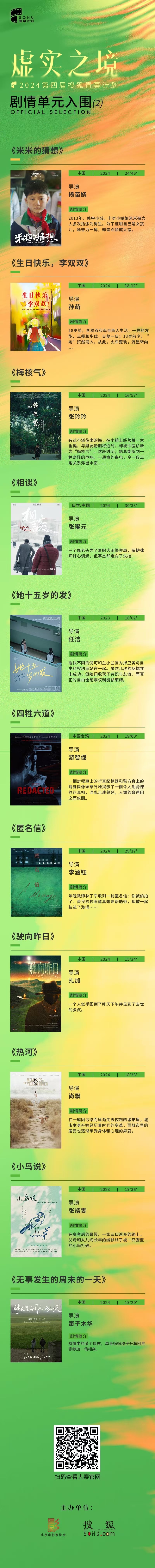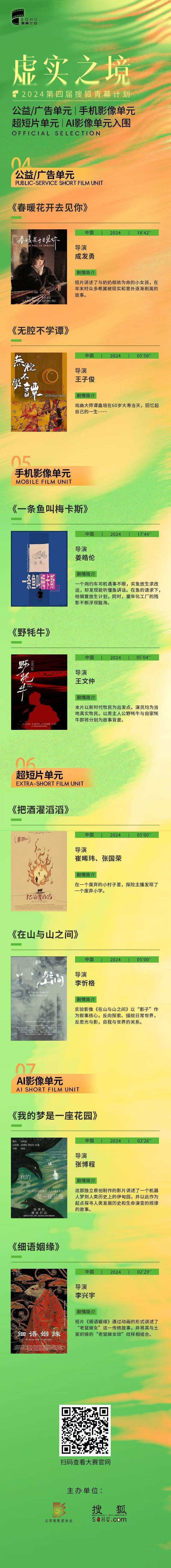 影展新势力2024第四届搜狐#青幕计划# 大赛终审入围片单公布,共计41部电影短片入选,影片将于北京开启展映并评选荣誉。