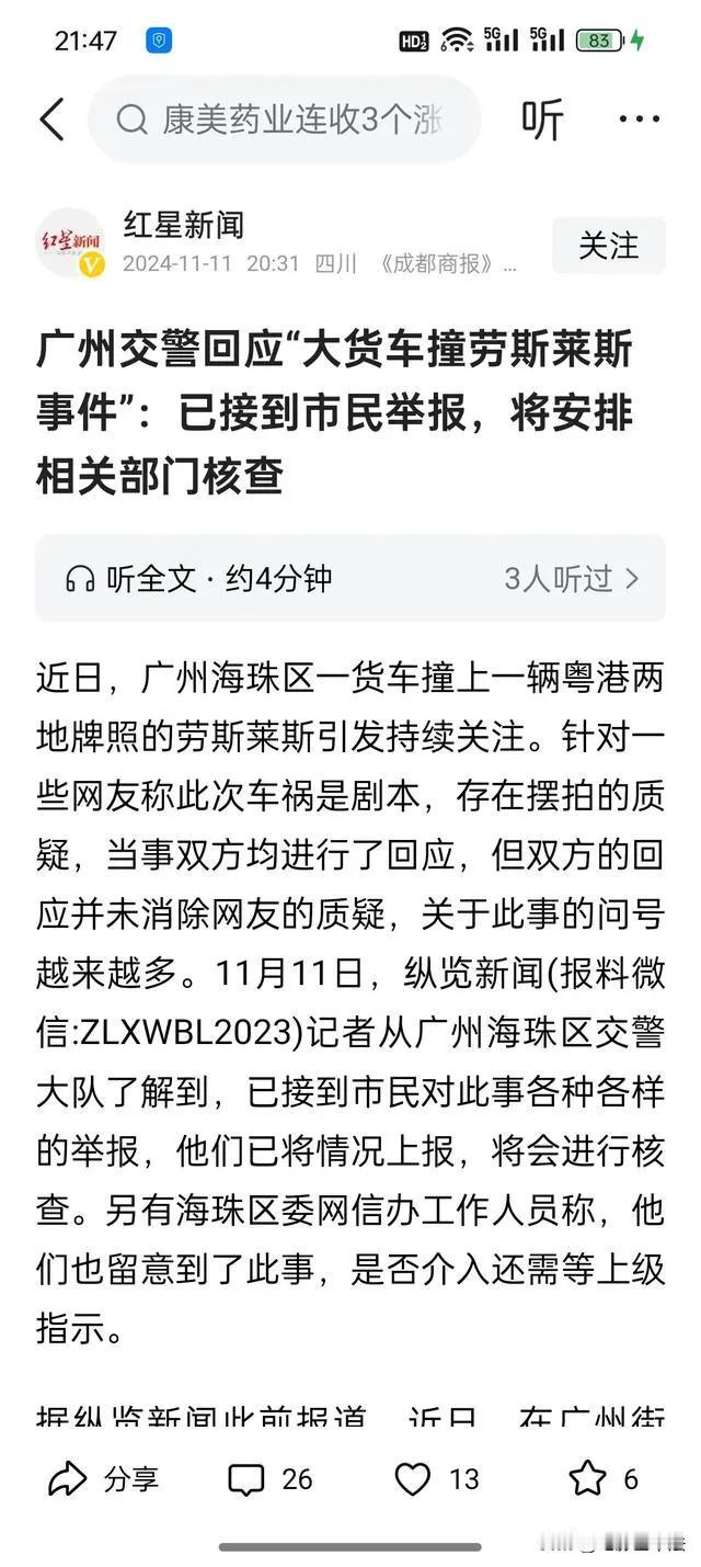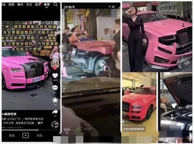 完蛋了,劳斯莱斯女车主肯定要被抓了,立帖为证! 这起事件绝对是剧本,几天前就有人宣传欢迎李老板开粉色劳斯莱斯光临小店。 这辆粉色劳斯莱斯就是朱毓珊被撞的那辆。 李老板就是站出来力挺朱毓珊的渣土车司机儿子。 这种巧合还有人不相信是剧本吗? 剧本策划的不错,但穿帮了,所以劳斯莱斯女车主和渣土车司机都违法了,即使因为没动用保险骗保不成立,但恶意制造交通事故,涉嫌危害公共安全,这是刑事犯罪,至少刑拘,可能还会判刑! 总之,劳斯莱斯女车主和渣土车司机,影后和影帝,这两个人都逃不掉! 现在明白朱毓珊直播时为什么会哭了,不是因为被网暴,而是因为可能要抓进去了,她害怕了啊! 目前警方已经介入核查,真相即将来临!敬请拭目以待!