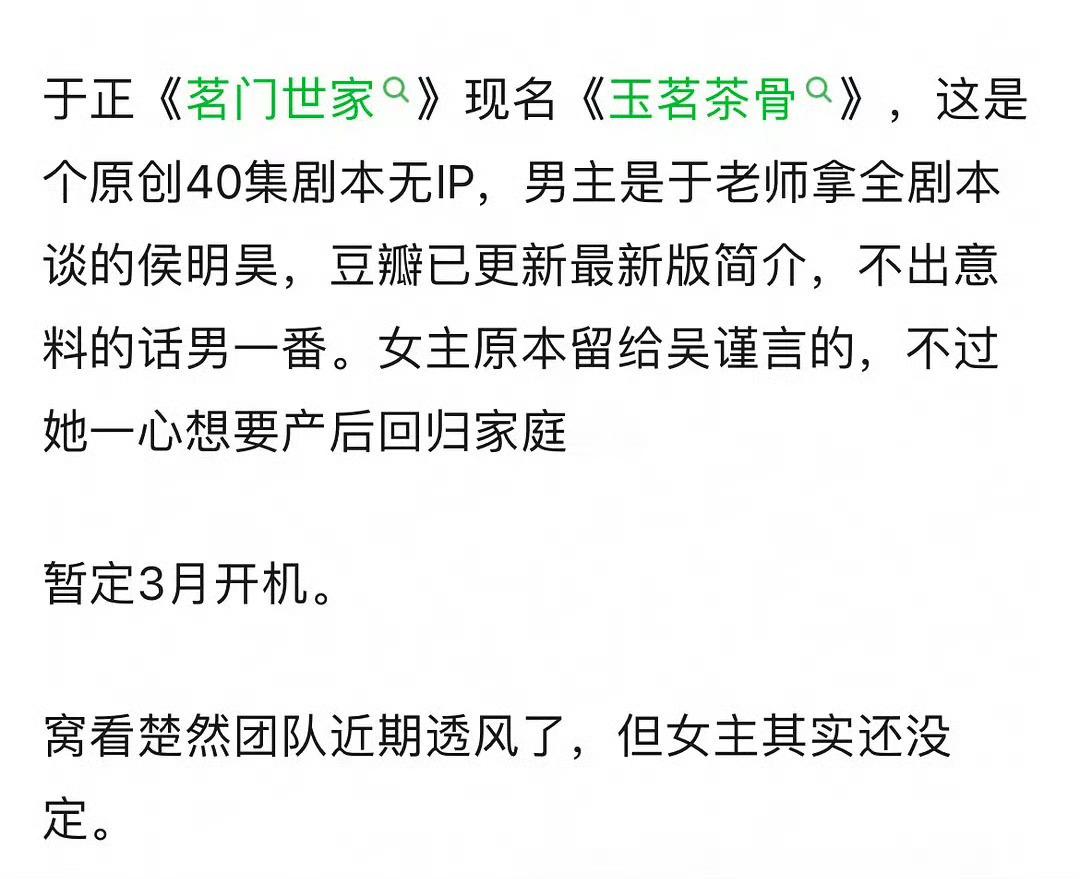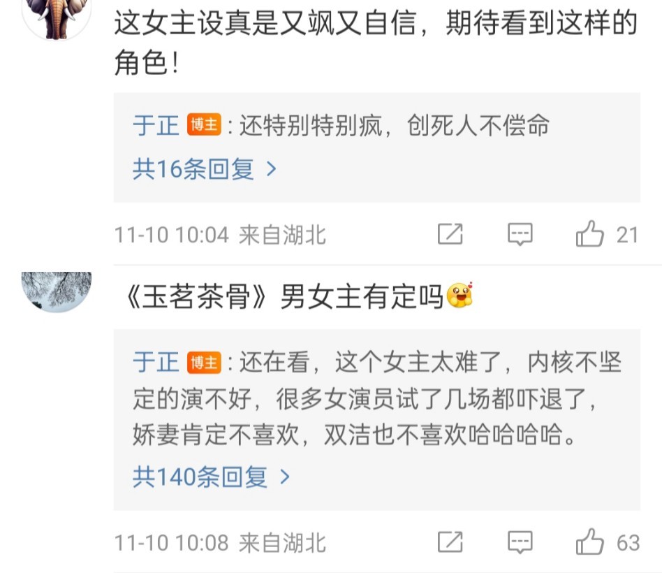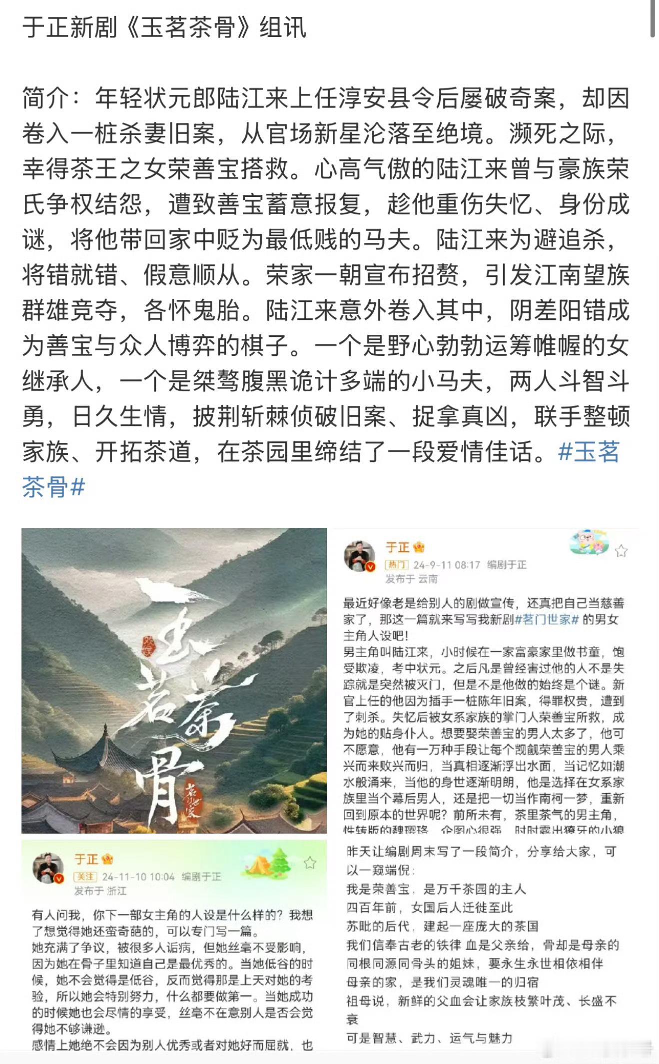 #于正说新剧6个男生都会爆# 于正说新剧《玉茗茶骨》人设都很绝,女主疯男主绿茶,还有5个男二,男主雄竞得辛苦,这6个男生都会爆!会找演过姐弟恋的女演员带颜值演技俱佳的男演员,其余配角各个帅、美、有张力[吃瓜]#于正一部剧要爆的三个元素#