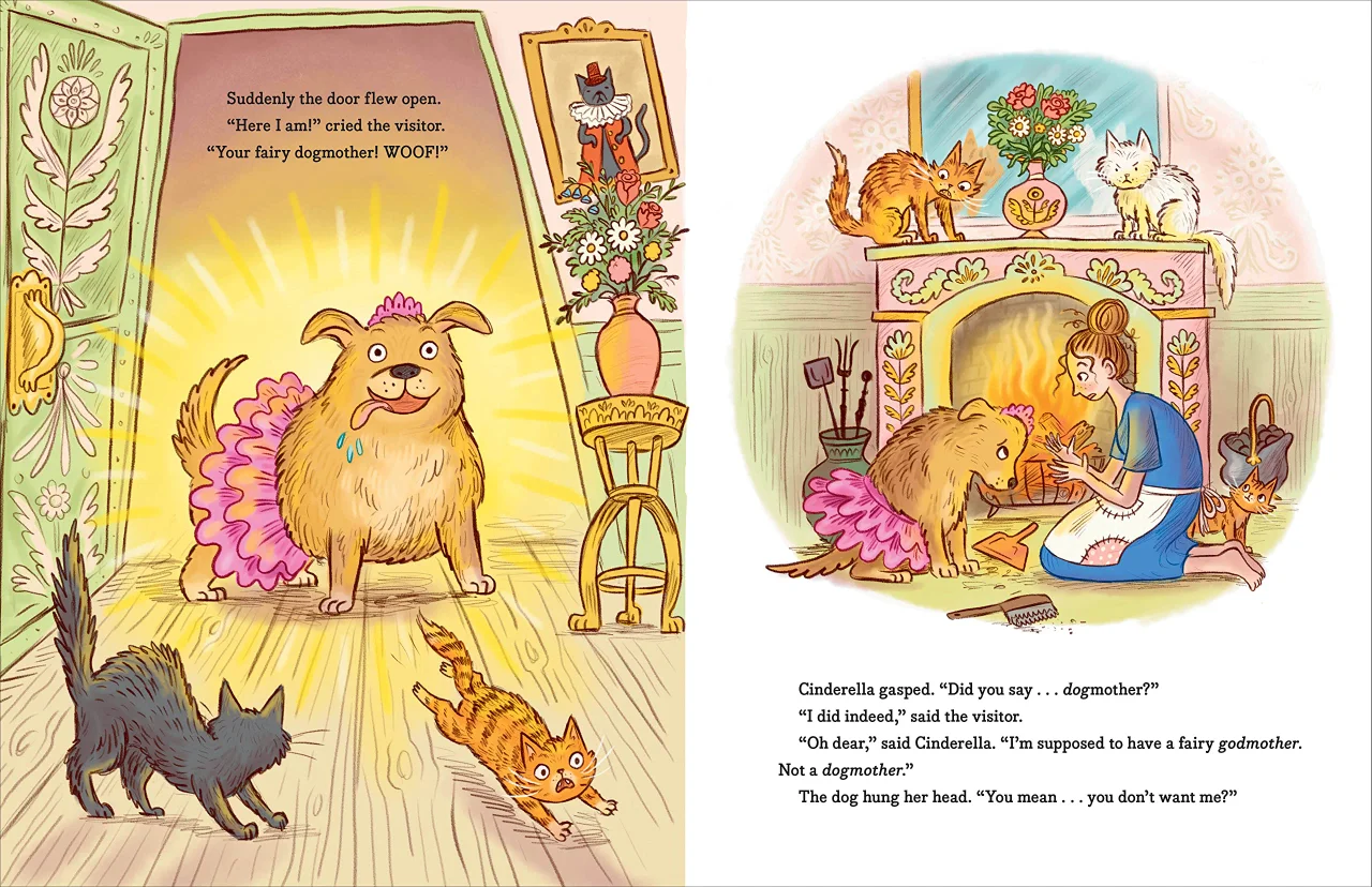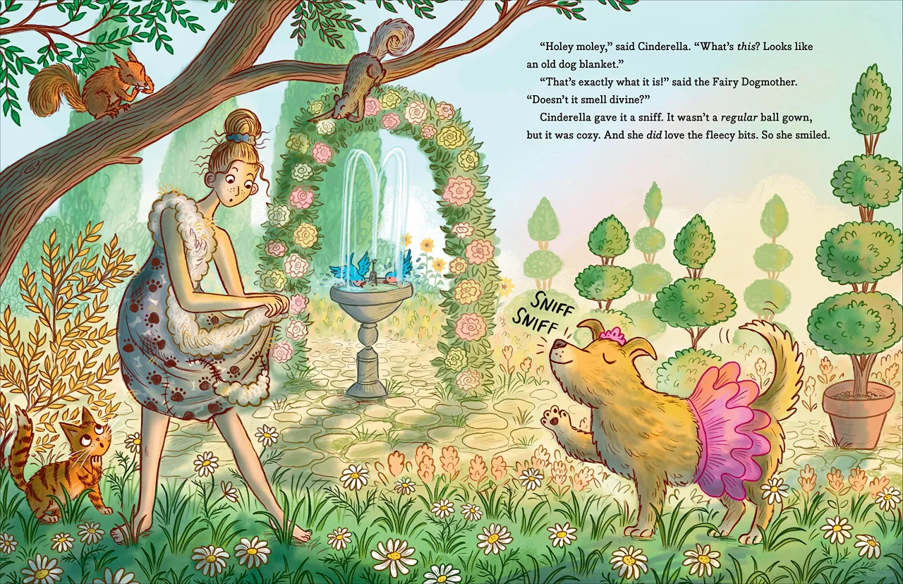 这时候,一个狗狗仙女“教母”出现了!灰姑娘非常不确定,这个世界上会有狗狗仙女教母吗?但她依然拥抱了这个粉红色短裙的狗狗仙女教母。