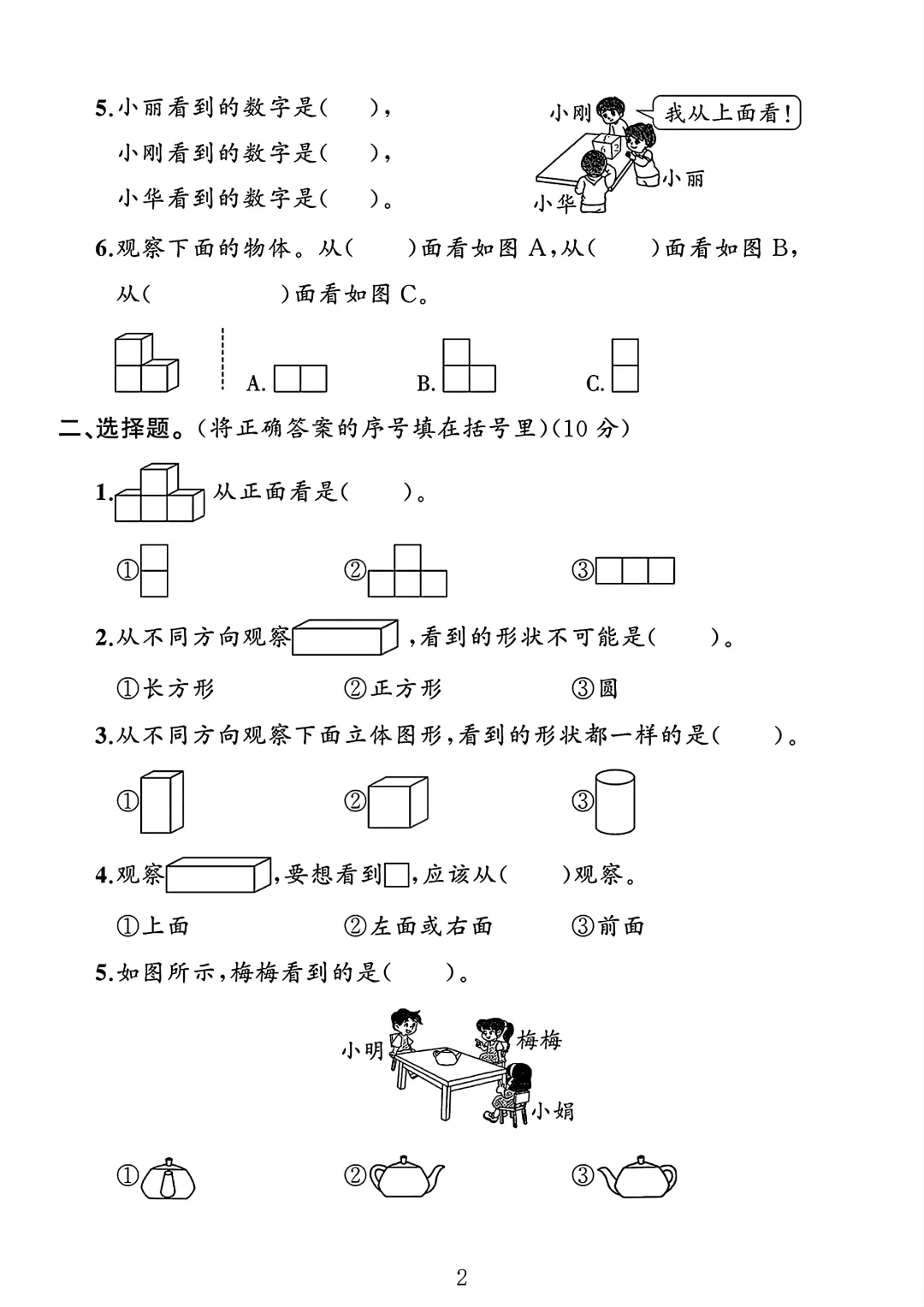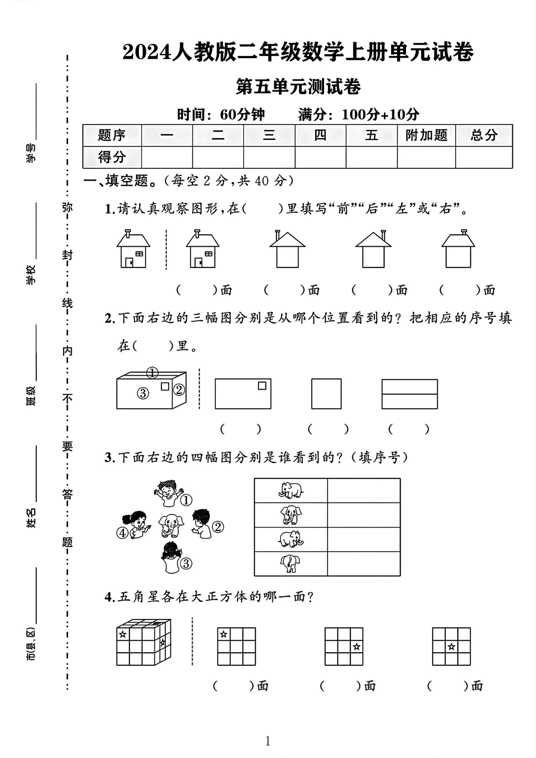 人教版 二年级上册数学 第五单元测试卷 单元测试 试卷 电子版可打印