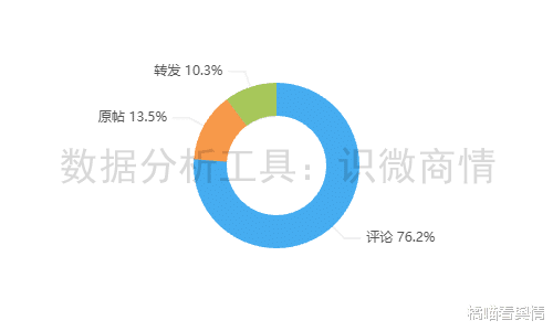 该段时间内,有关“36斤羊烤完仅剩6.9斤”的舆情信息类型以评论为主,占76.2%;其次为原帖,占13.5%;转发较少,占10.3%。