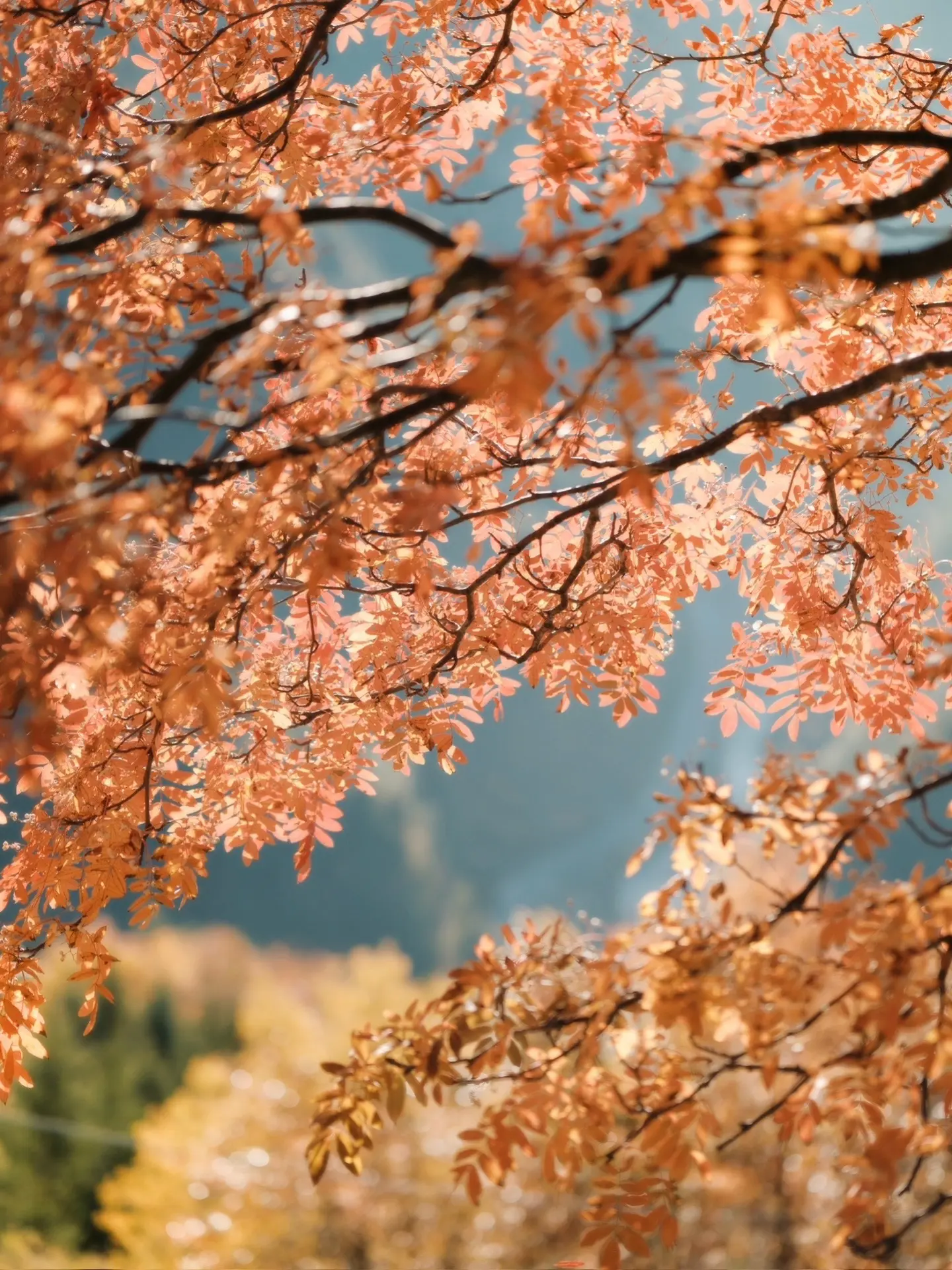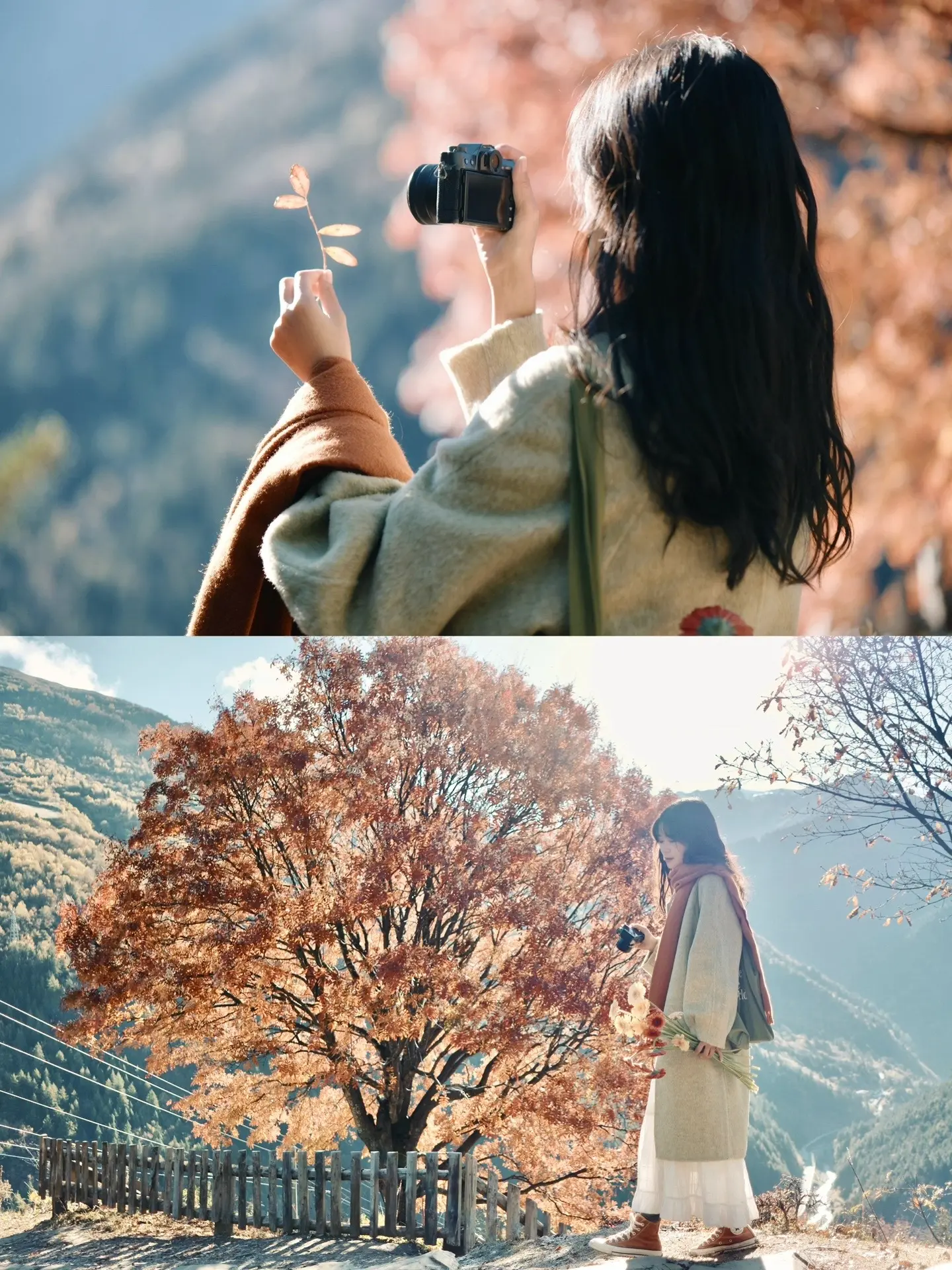山间秋意|🍂秋冬旅行文艺氛围感拍照。又一年 这棵树依然在四季交替中变换着色彩 等到秋天来看它 在光影里捕捉具像化的生命力 / 秋冬旅行拍出文艺电影感