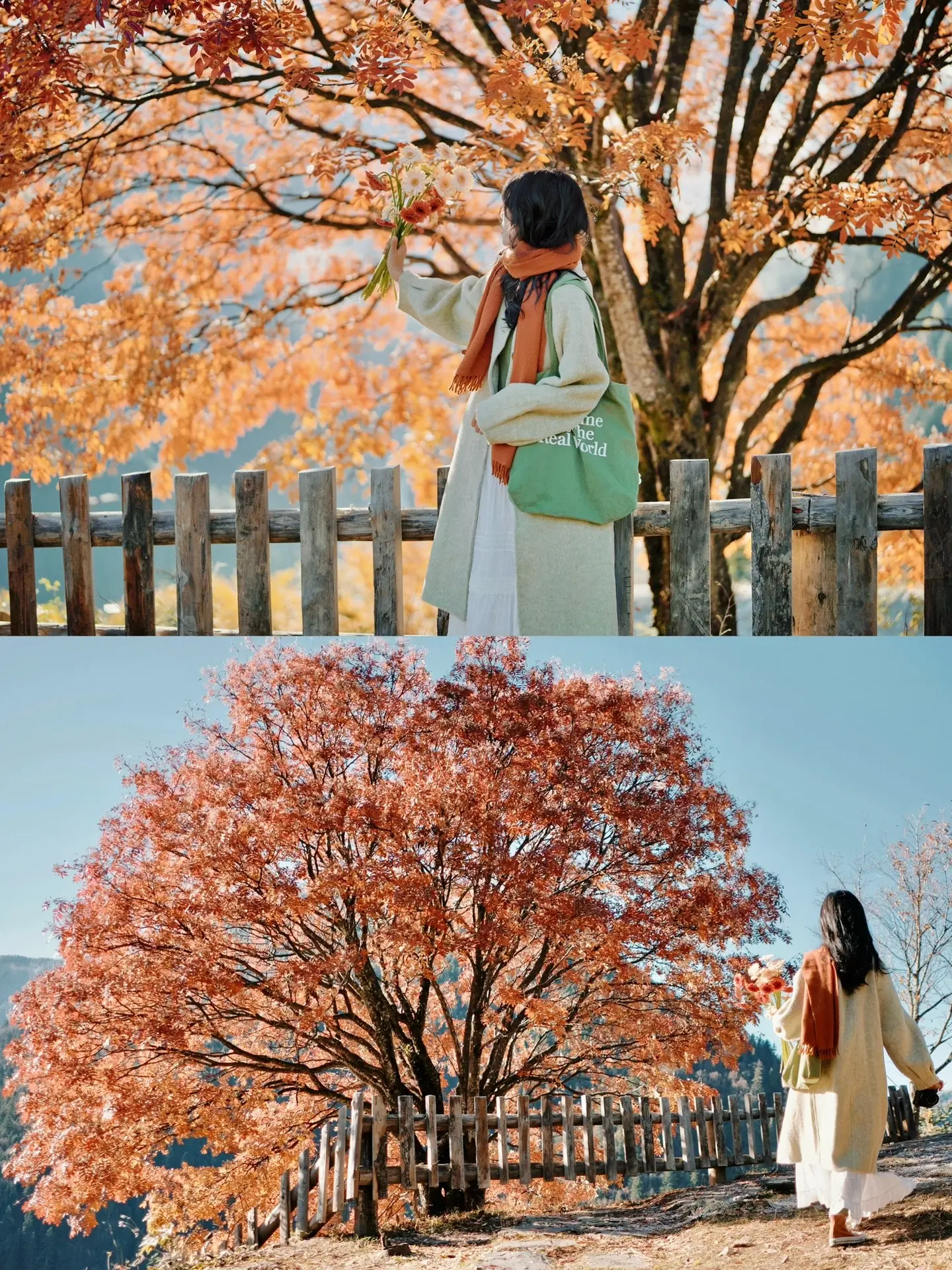山间秋意|🍂秋冬旅行文艺氛围感拍照。又一年 这棵树依然在四季交替中变...