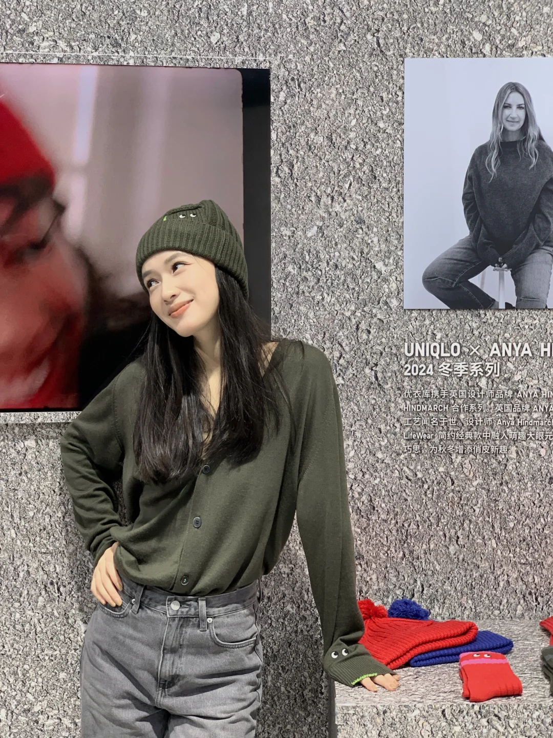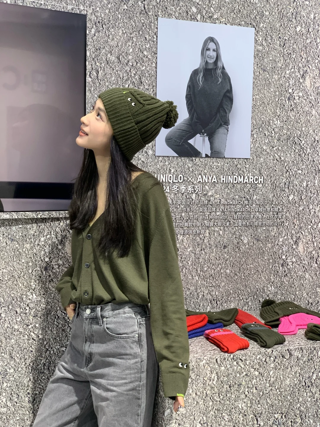 What Makes Life Better 这个简单的问题中, 蕴藏了改变的强大能量。 在进博会逛完优衣库展厅后, 冒出的想法就是: 穿搭是艺术与科学的延伸, 更是能够充实所有人的生活。 优衣库与ANYA HINDMARCH合作系列, 在这次进博的全球首秀上 我选择了一套橄榄色开衫与毛线帽 都装饰有玩趣的大眼睛, 在循规蹈矩的穿搭公式里面 透露出一点可爱的部分 就是让一套极简风格获得生动的秘密