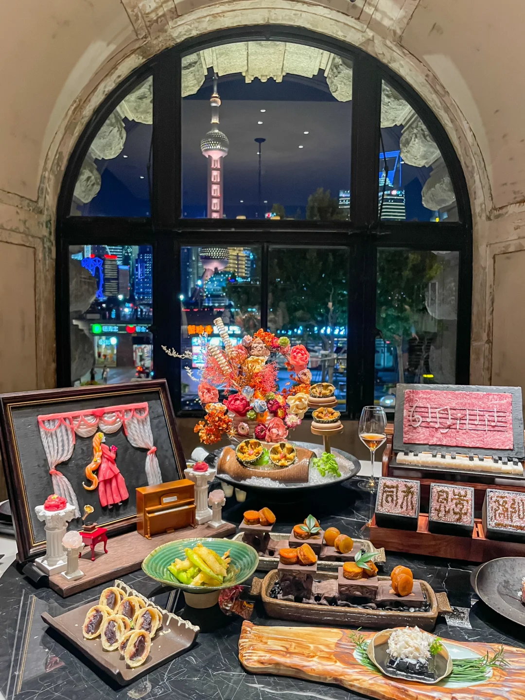 在外滩吃到的漂亮饭😌 面朝陆家嘴三件套!晚上东方明珠亮灯后好好看~ 店里的表演、装修和菜品 透露着中国人骨子里的浪漫💕 - 不仅是吃饭 还在这感受了一场艺术美学盛宴! 菜品还可以自己DIY写字🌈全程互动还是挺多的