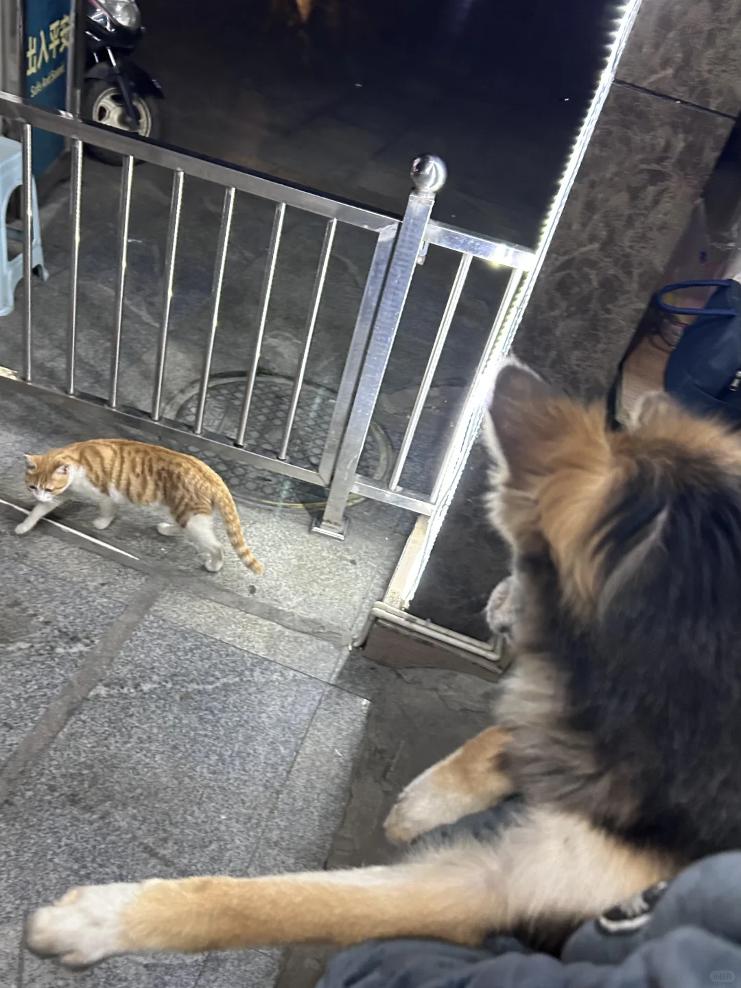 我们抱着小黑,小橘就在地上到处嗅闻,丝毫不抬头看一眼。哪怕小黑已经在空中呜呜叫半天了。