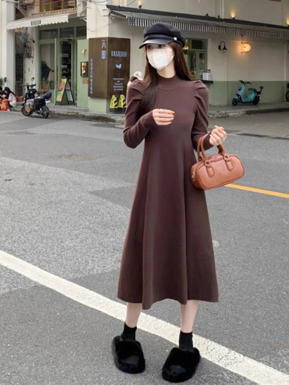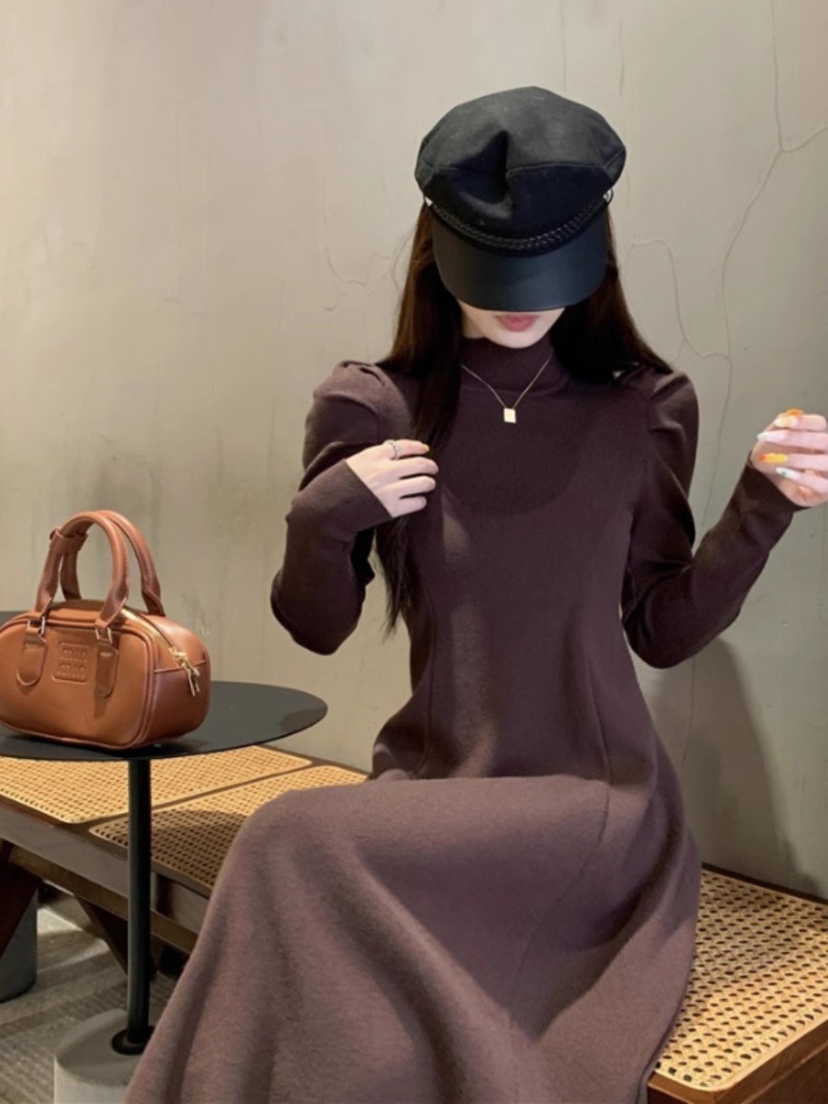 法式白色半高领针织连衣裙女秋冬季大衣内搭
