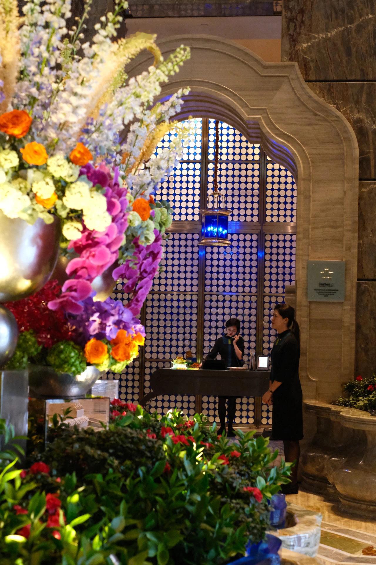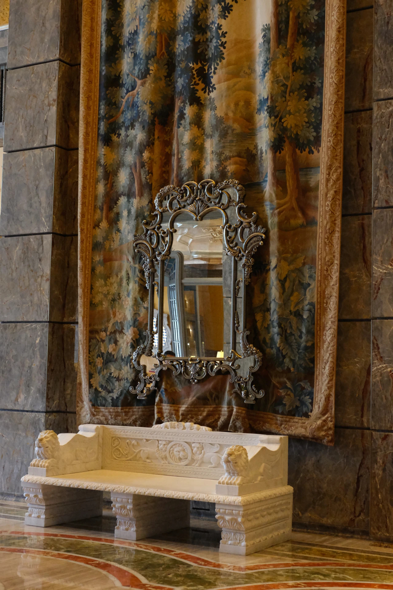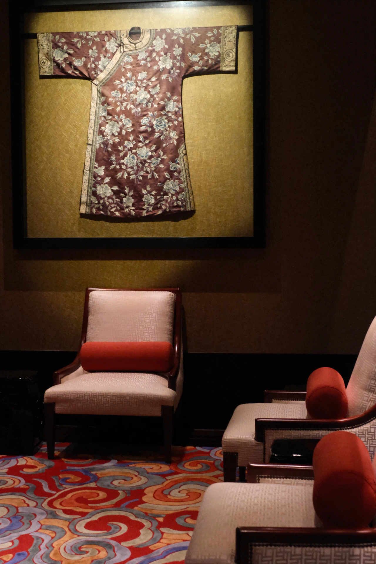 来澳门心心念念的就是这家福布斯五星餐厅。不同于澳门大多数高级餐厅给人的纸醉金迷感,这家反而是高冷威严的。整块大理石雕铸的威仪盘龙,与地毯上的祥云呼应,自成一股天地浑圆之气。连餐具都是剔透琉璃,握而尊贵。主厨徐伟豪的封神家最脆皮百花鸡,是上过《风味人间》,创下过亿收视的人气菜品。鸡皮的食感味道确实让我眼前一亮,焦香薄脆,每忆每垂涎。