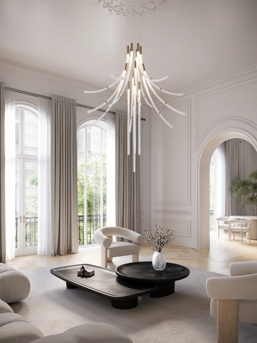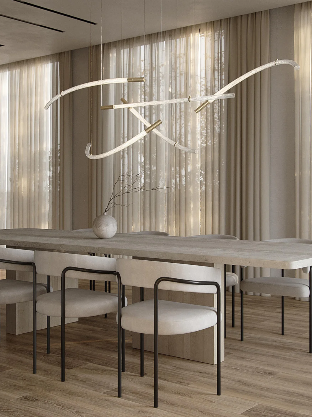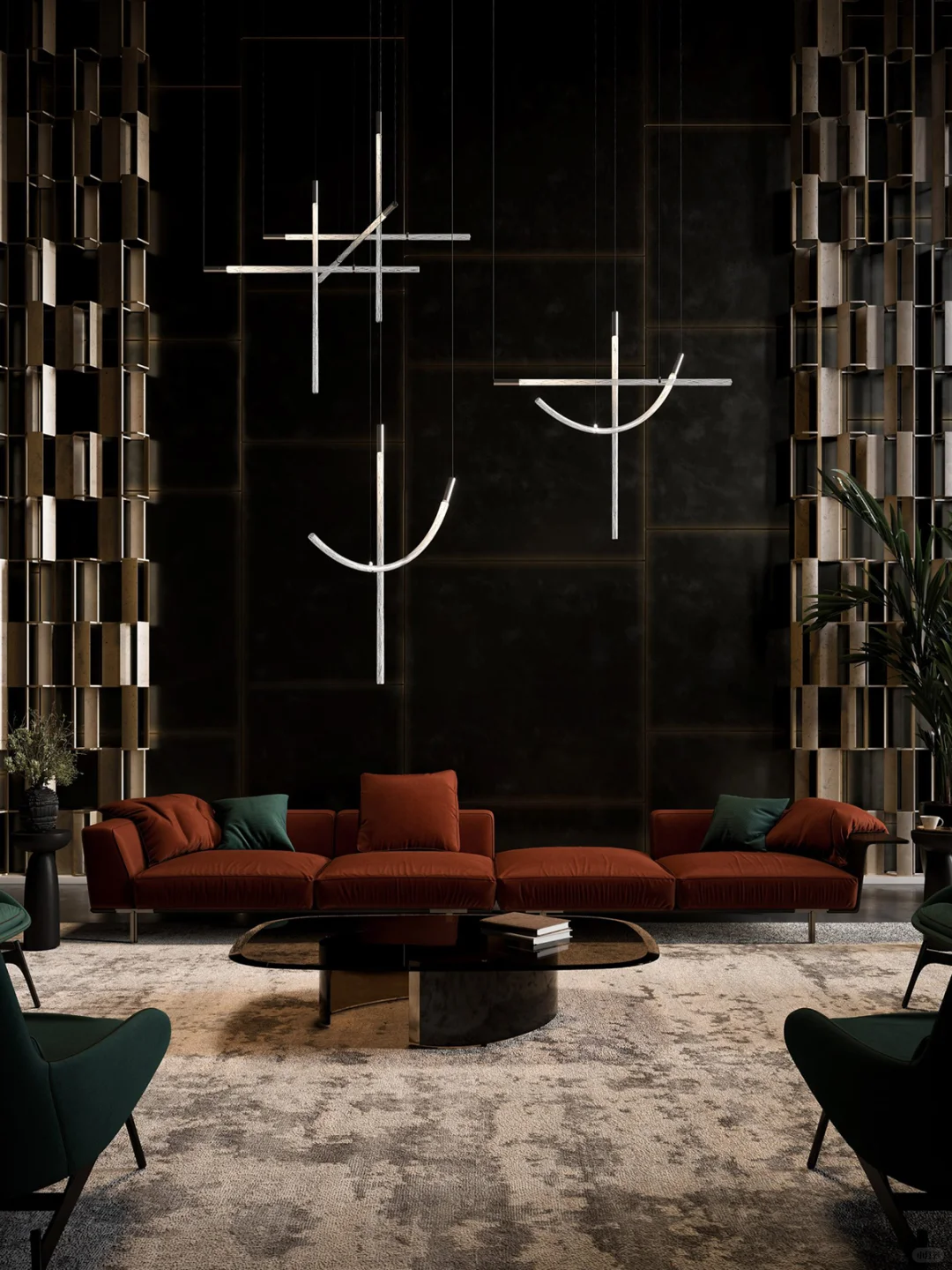 ✨水晶玻璃棒经过工艺大师反复加入玻璃碎手动拉伸,形成一字形和不同程度的弯曲形状,可以带来无限的组合方式。 🎨灯体中能看到螺旋纹理内里交织在一起,甚是精美。 💡当灯光亮起,他的闪耀与独特的形状充满神奇与惊喜。 💠Flare形态是灵活可变的,可以垂直安装,非常适合楼梯间或者办公空间或大厅。 🏡如果你想选一款特别的餐厅吊灯,Flare就非常合适,各种组合横向排列,大大增加就餐氛围,提升空间的格调。