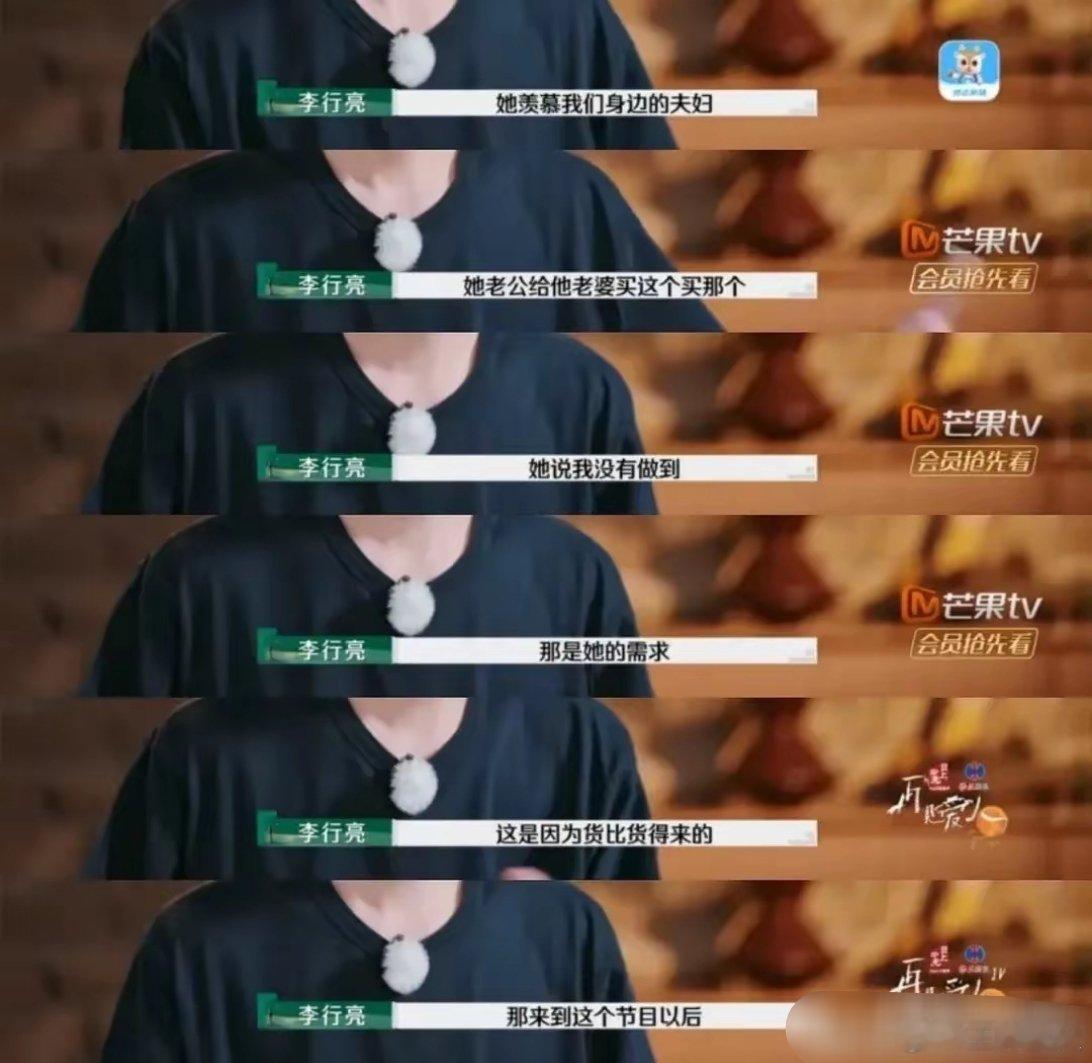李行亮货比货 李行亮表示麦琳喜欢在日常生活中,老拿别人做比较。
