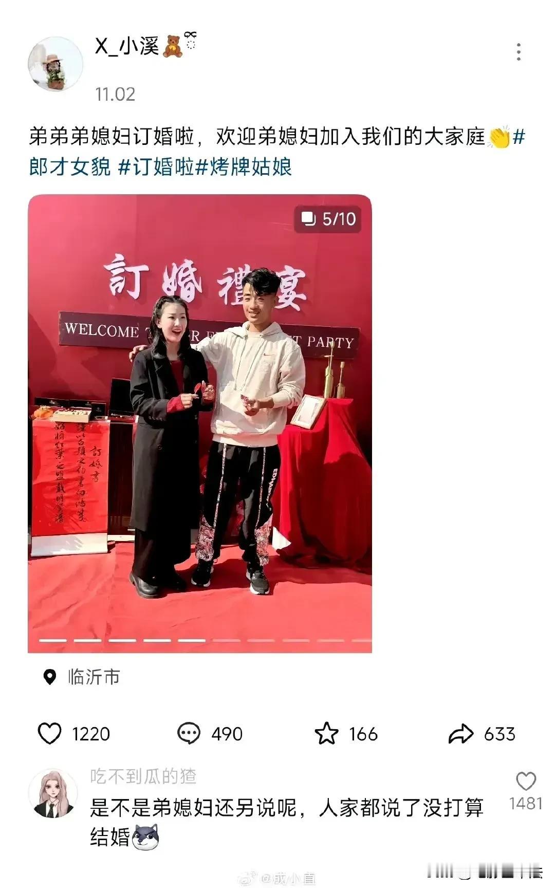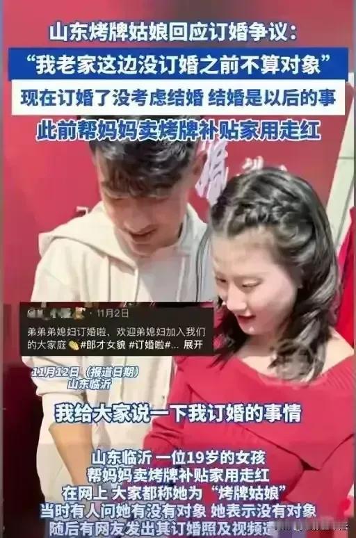 太炸裂了,山东烤牌姑娘的最新后续来了! 山东烤牌姑娘自从说出正在谈对象但不算有对象,已经订婚但不考虑结婚后,人设与口碑急速坍塌。 万万没想到,这事居然还有内情,目前有博主透露,烤牌姑娘和未婚夫找到了小姨,要求小姨出镜道歉,理由是关于对象的文案是小姨写的。 小姨不愿意,并解释说她是好意,她是在姑娘已经说过没对象之后怕网友发现姑娘已经订婚不好解释才建议姑娘发视频说明,文案虽然确实是她写的,但第一她是好意,第二文案是经过姑娘审核并同意的,第三视频也是姑娘自己决定发的,所以整件事都因由姑娘自己负责。 小两口喋喋不休的指责曾经好心帮忙的长辈,最后不欢而散。 但是更炸裂的事被网友发现了,小两口上门指责小姨的时候,未婚夫无意透露,烤牌姑娘已经怀孕。 天哪,已经订婚已经怀孕,还不考虑结婚,这习俗真的是山东临沂的吗? 别的网红是一个人带火一座城,而烤牌姑娘是一个人毁了一座城。 人永远赚不到认知以外的钱,烤牌姑娘还是好好摆摊吧!
