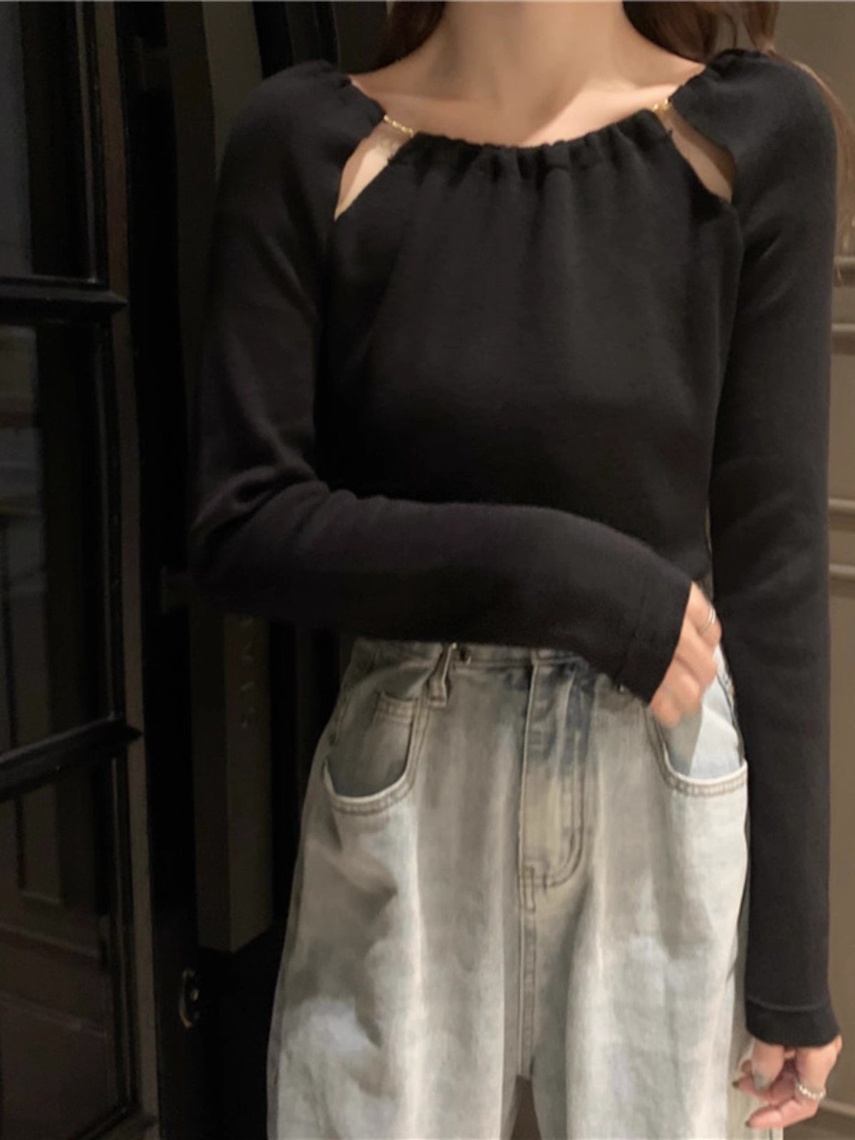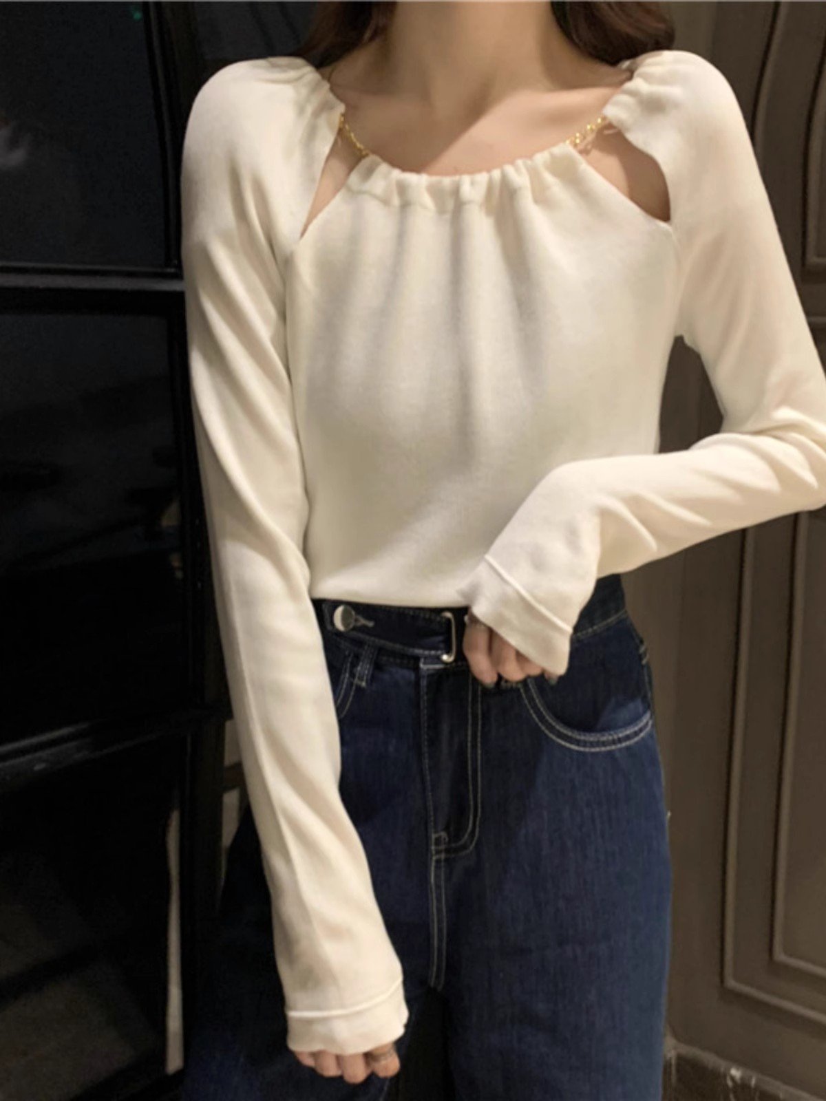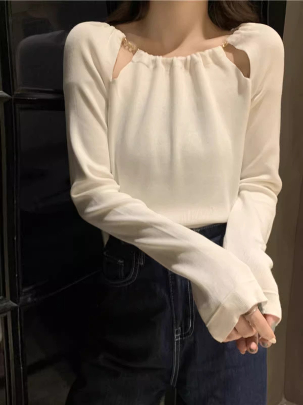 春秋季挂脖打底衫女内搭长袖T恤设计感小众
