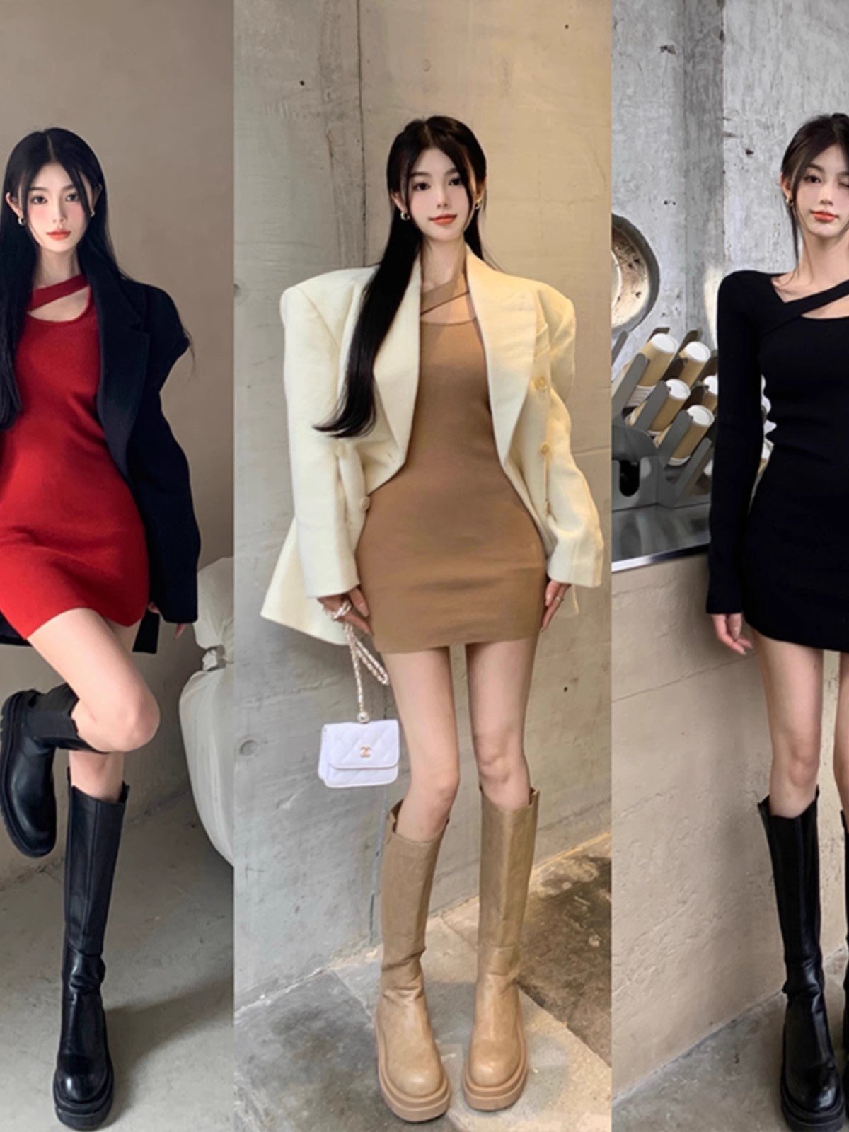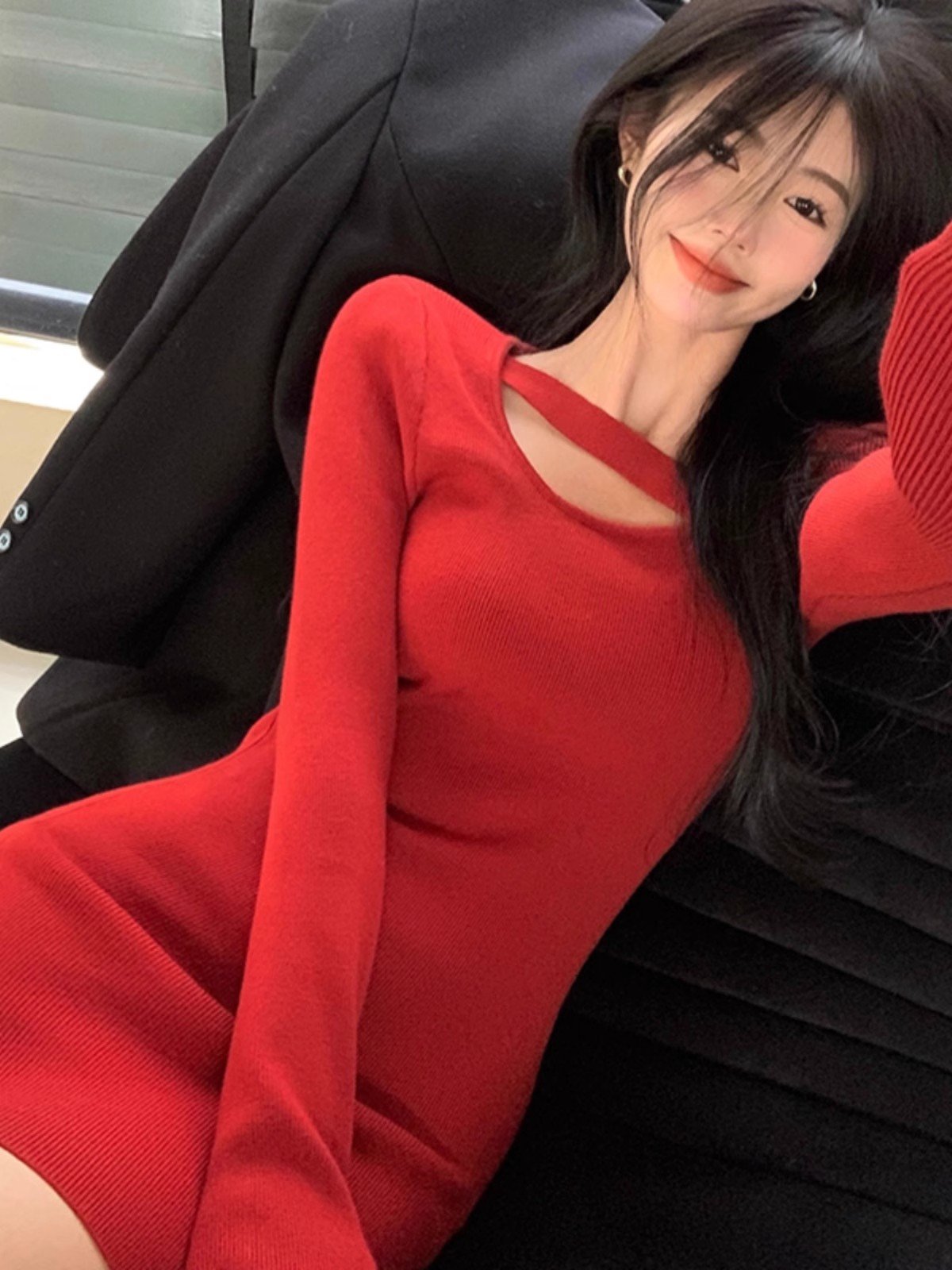 纯欲辣妹内搭黑色针织连衣裙女秋冬打底配大