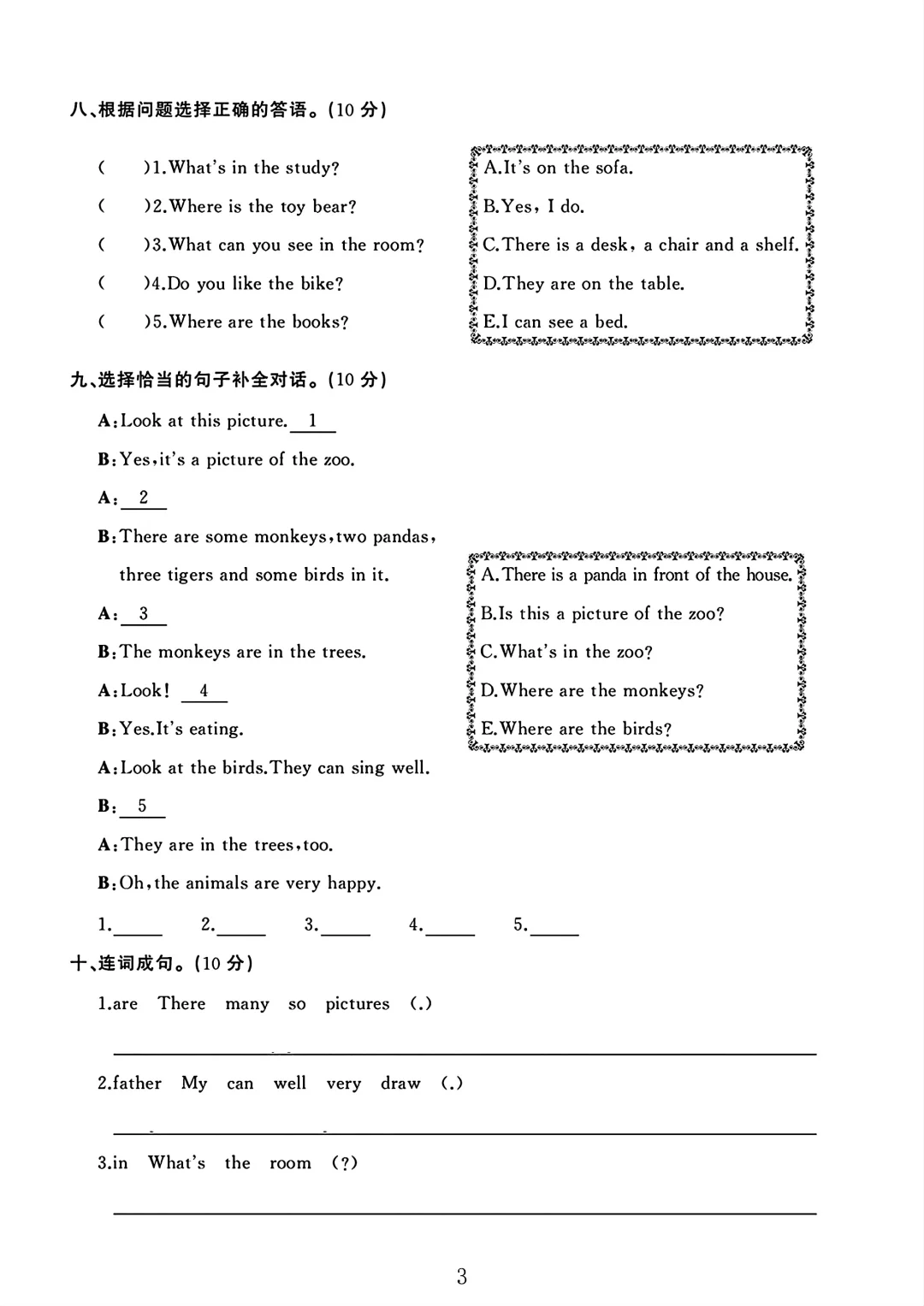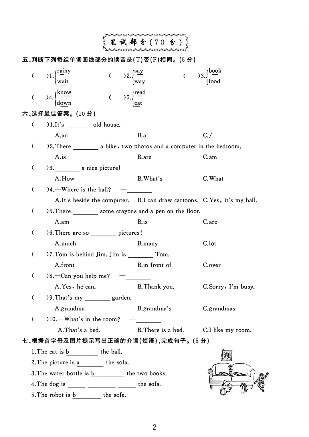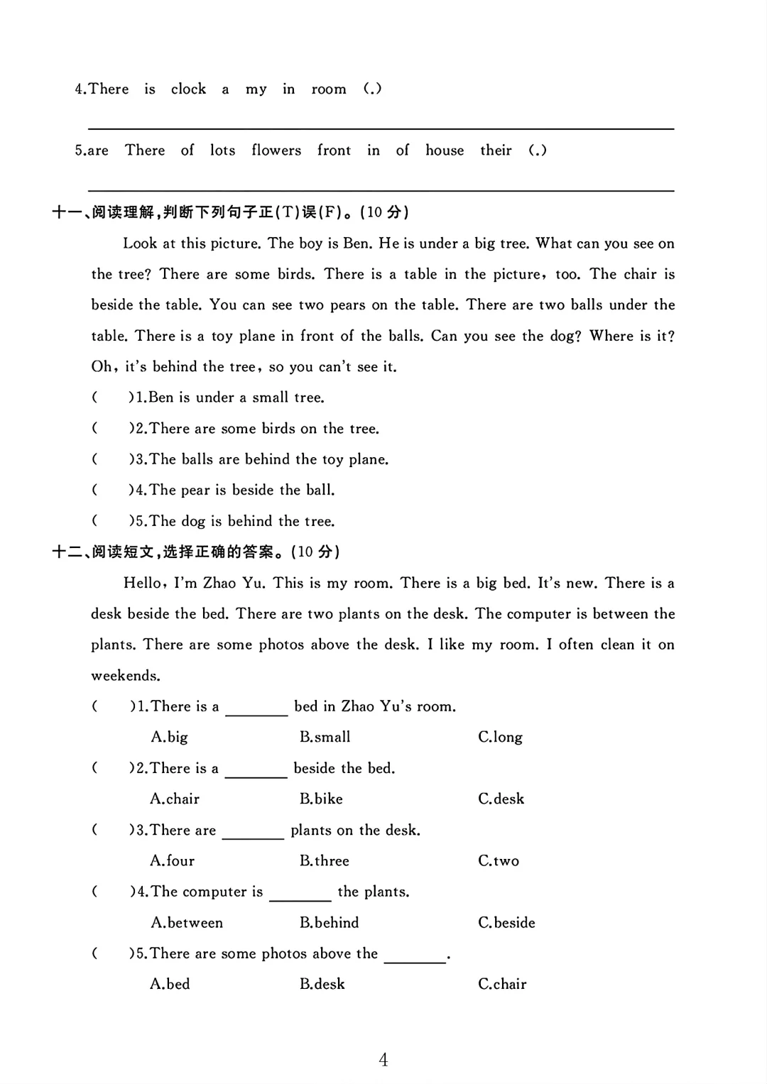 人教版 五年级上册英语 第五单元 试卷 单元测试 电子版可打印