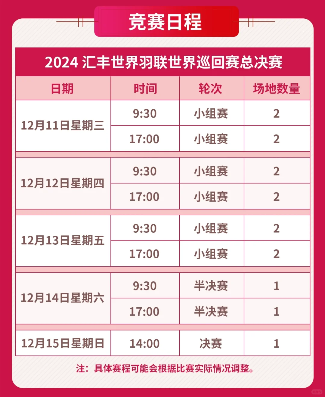 杭州人民有福了!终于又可以去看球赛了!🥰2024汇丰世界羽联世界巡回赛总决赛🏸,将于12月11日至15日在奥体开赛了!这场万众瞩目的羽坛赛事,一定要去亲历见证,请收好下面的详细🧭购票攻略!